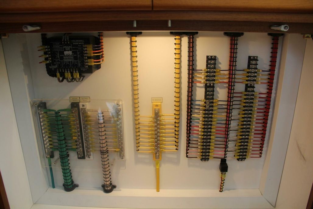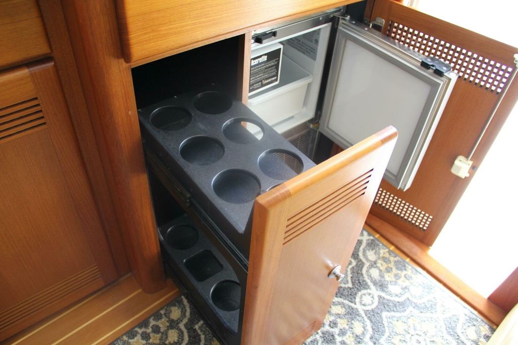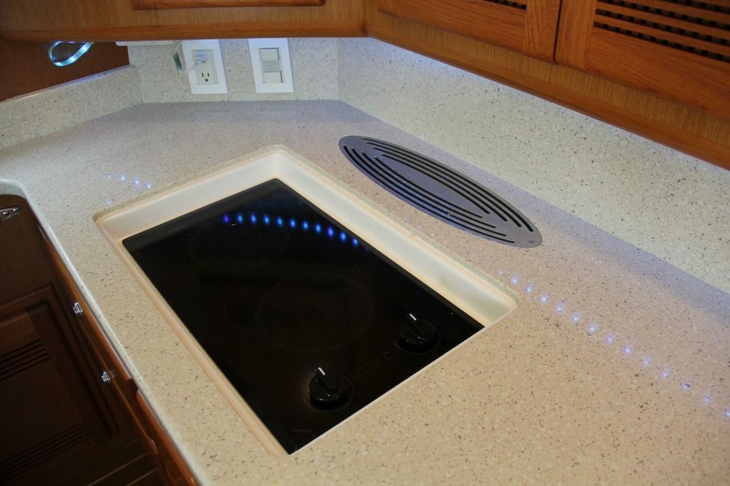 The interior shows like new — featuring pristine teak cabinetry, real teak and holly flooring, upgraded LED lighting throughout, and removed salon lambrequins to maximize natural light and highlight the factory matte-finish teak. There is truly ZERO boat odor aboard.