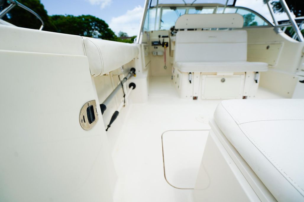 The 2670 Denali LS marries traditional design and detailing with exceptional functionality and advanced marine technology. The unique forward helm design offers exceptional visibility and room on the rear deck. Drink holders, storage and loungers highlight the on-deck amenities. There's also an abundance of fishing conveniences including a cockpit sink, bait prep areas, and easy access to tackle and rod storage. Below, a V-berth, generous storage and rod holders are highlighted by a special LS Series fabric. Additional interior details make the 2670 the perfect choice for a variety of water sports.