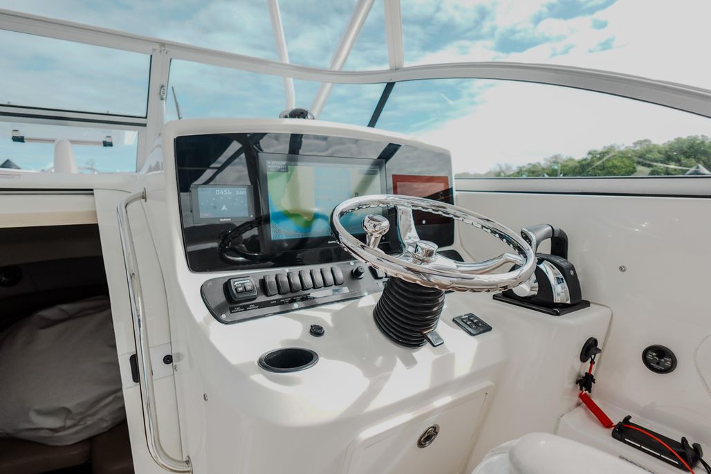 Introducing the 2007 Boston Whaler 305 Conquest, a remarkable walkaround boat that embodies both performance and style. With an overall length of 32.08 feet, this vessel is crafted from durable fiberglass and features a deep Vee hull shape, ensuring a smooth and stable ride even in challenging waters. Powered by twin Mercury 350 Verado engines, each delivering an impressive 350 horsepower, this boat is designed for exhilarating adventures on the water. With only 360 hours of use, these engines promise reliability and power for your cruising needs. The 305 Conquest is equipped with essential features that enhance your boating experience, making it an ideal choice for both leisure and fishing excursions. Its thoughtful design and robust construction make it a standout option for those seeking a dependable and stylish vessel. Experience the thrill of the open water with this exceptional Boston Whaler model.
