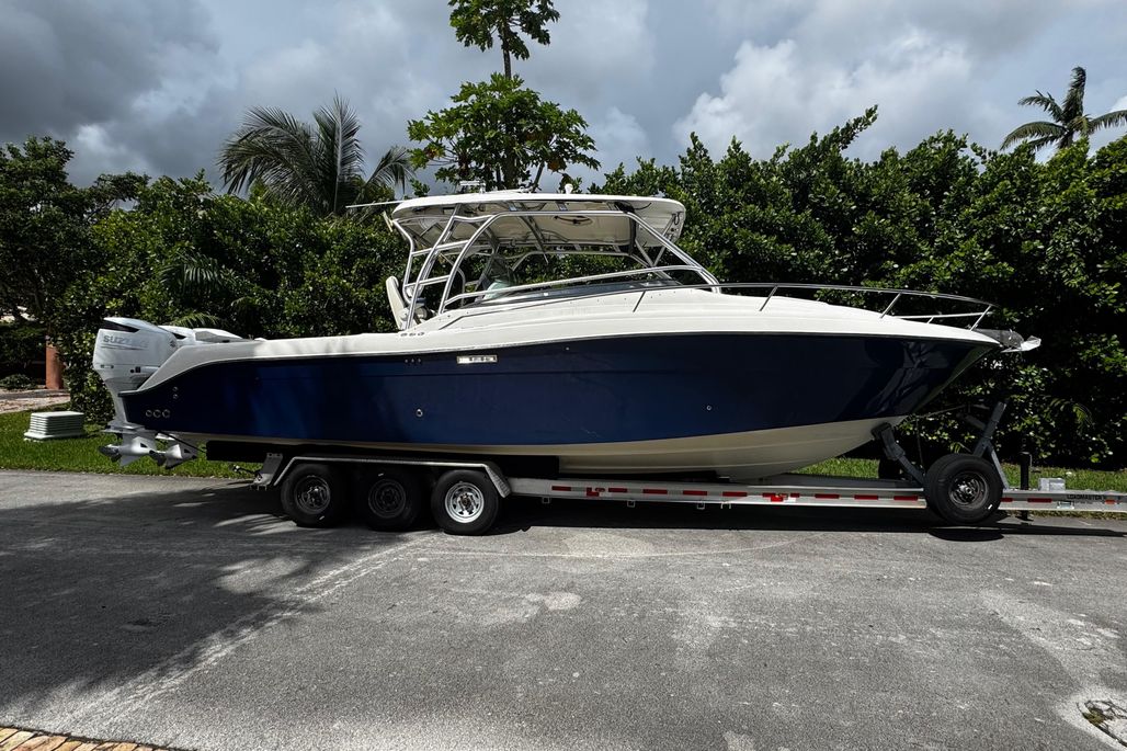 One of the cleanest Hydra 3300VX you will find. 100% Turn Key in great shape w/ great upgrades. Boat shows great and is stored under cover with both cushion covers, console covers, windshield and motor covers. Really nice 2012 Triple Axle trailer w/ hydraulic/electric brakes serviced every year. Heavy duty quality Tires w/ 2 spares and electric winch included in sale.