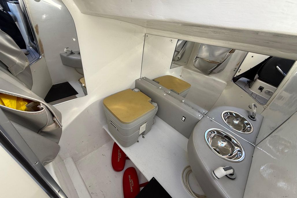 The Supercat 3600 is an ideal day cruiser for the family, boasting a toilet, lounge area and a double ined. The hull design means the boat stays perfectly calm and stable at anchor and the 200 mile range makes it the perfect choice for running around the mediterraneanu Just think.. You can leave Rome, have lunch in Sardinia or Monaco and be back home for dinrier!!
