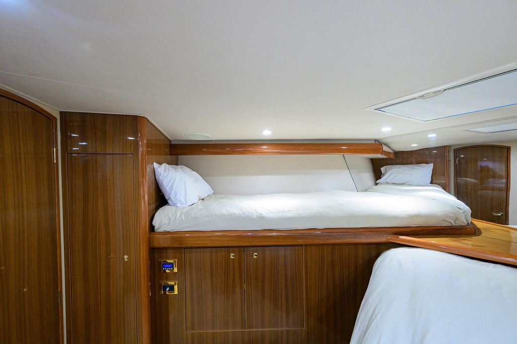 "1/2 BARREL" is a 4 stateroom 64' Viking sportfisherman which has had only 2 owners since new. Powered by MTU 16V2000s the motors have had a significant update service in 2022. Note this vessel also carries the additional fuel capacity. Maintained by professionals, there has been good regular maintenance and two periods of significant upgrade in 2014 and 2023. Additionally, at the end of 2024 two brand new Kohler generators were installed. Sporting a proud Palm Beach full tuna tower with a clean foredeck she is recently out of the boatyard with new anti-fouling and running gear tune-up. A comfortable offshore ride, the larger engine package in this boat allows 25 knots at 1700rpm with relative economy or kick it up to a 30 knot cruise if wanted. This may be the only 64' Viking of this vintage with 2300 gallons of fuel capacity. A great fishing machine that's got mezzanine seating with newer refrigeration units, a new Eskimo Ice unit in mid-2025, and a teak cockpit deck updated about 5 years ago. Available for showings in Fort Pierce, FL. Check out more details in the full specs following.