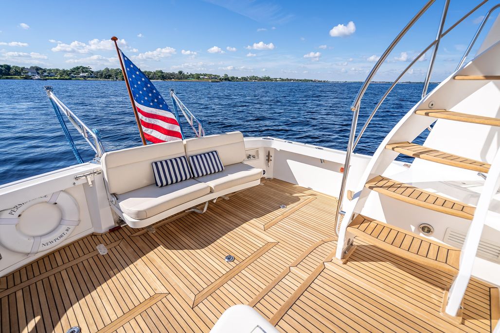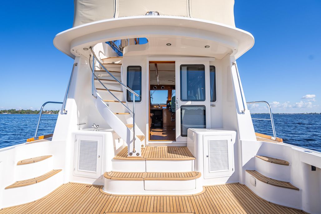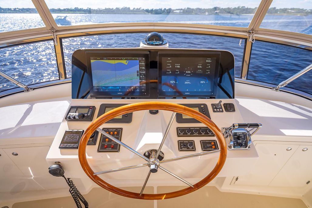 Her refit renewed and upgraded nearly every system and surface onboard, including a Seakeeper 9 gyro stabilizer, complete Garmin electronics suite at both helms, Onan 17kW generator with Auto Start, custom folding transom-mounted bench seat, Maretron tank monitoring system, and Victron inverter with full charge control and monitoring, among countless other refinements. No detail was overlooked in creating a yacht that feels as new as it looks.