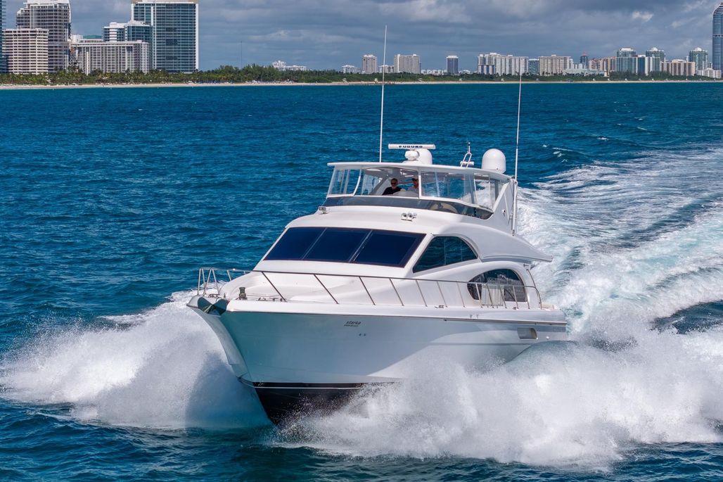 Creating the perfect luxury cruiser is no simple task, so we encouraged extensive customer input when developing our Hatteras 64 Motor Yacht. The result is a well-mannered model with a fresh accommodation plan (including a pilothouse with lower helm, galley, and dinette) and intuitive touches throughout (like an electric range with touch dials instead of knobs). Here, our innovative convex hull shape, which earned its stripes on our hard-charging sportfishing boats, allows for more interior space forward and provides a softer ride in rough water. In addition, propeller tunnels give this 116,700-pound, ocean-going cruiser a remarkable 4'8" draft even with the heaviest engines available. Our 64 Motor Yacht takes inspiration and ingenuity to a grand scale.