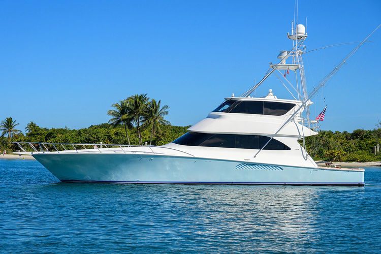 The 74’ Viking was the Flag Ship of the Viking line for many years, its reputation as a high quality, safe , stable and high performance platform was legendary, to this day the 74’ Viking still enjoys a solid reputation so much so that Viking has reintroduced the 74’ to its new line of boats. Over the past twelve months ON ICE has received a major refit and updating, form its new bottom job to the custom deluxe hand laid individual teak boards in the cockpit to new wall coverings and headliner to detailed attention to the mechanical items on board. Striking in appearance ON ICE turns heads wherever she goes, this is the opportunity to own a great family cruising boat or a downright serious fishing machine.