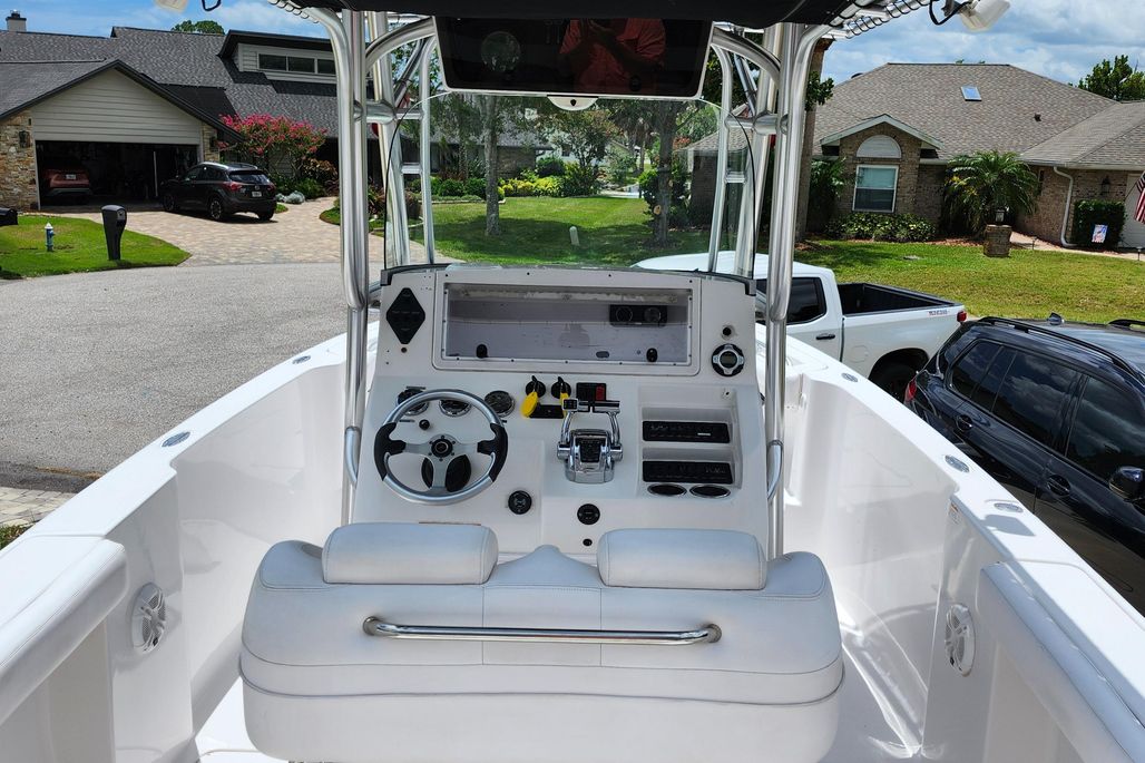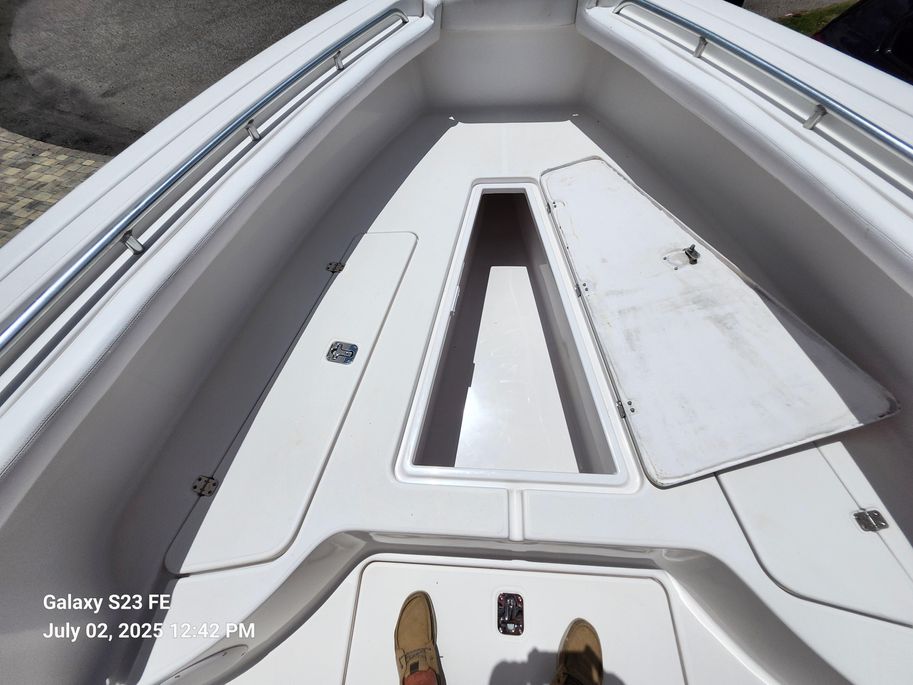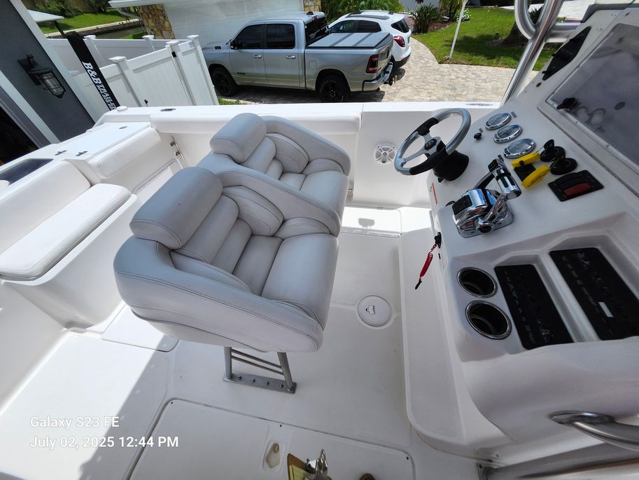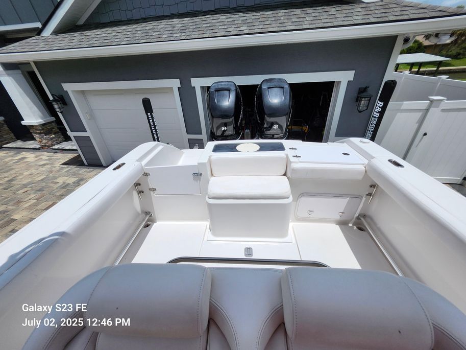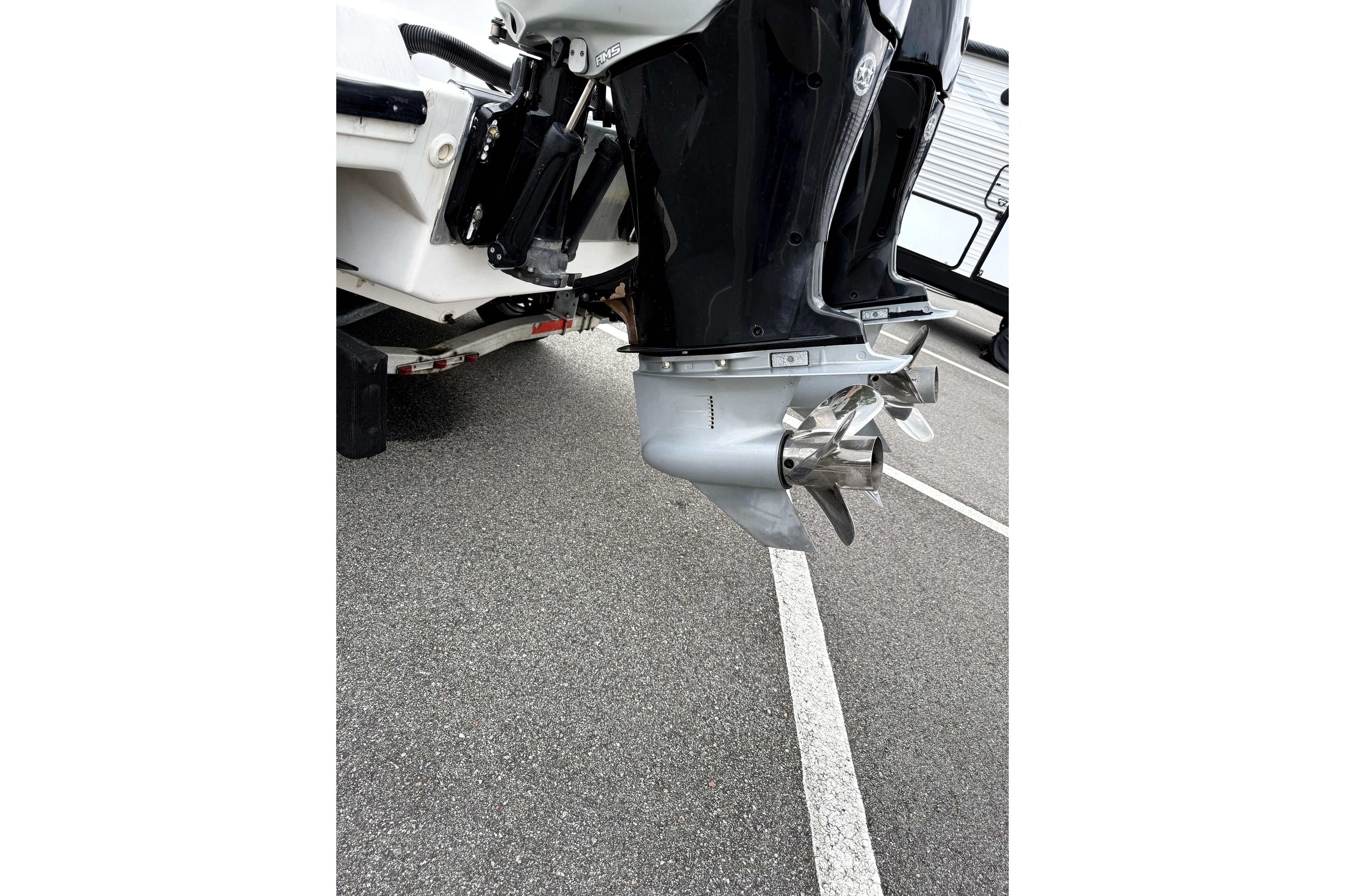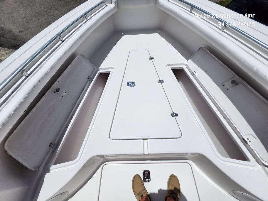 This boat is sold without any electronics (they were removed by the previous owner) which offers you a blank canvas for your personal custom electronics suite. The boat is equipped with a Sony marine stereo and multiple speakers, new AGM batteries (4/25), T-top mounted flood lights and forward spotlight, Attwood 2000 electric bilge pumps w/auto float switches, and removable 3-step dive/boarding ladder. The 2020 Mercury Verado 350s were recently installed by a local marine dealer and replaced older Mercury 250 outboards. The dealership test drove the boat after the engine replacement and described the ride as "exhilarating"!! She's ready for your personal touches and heading out for fun on the water!