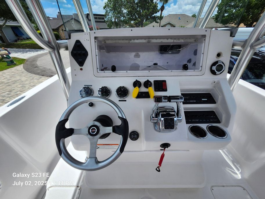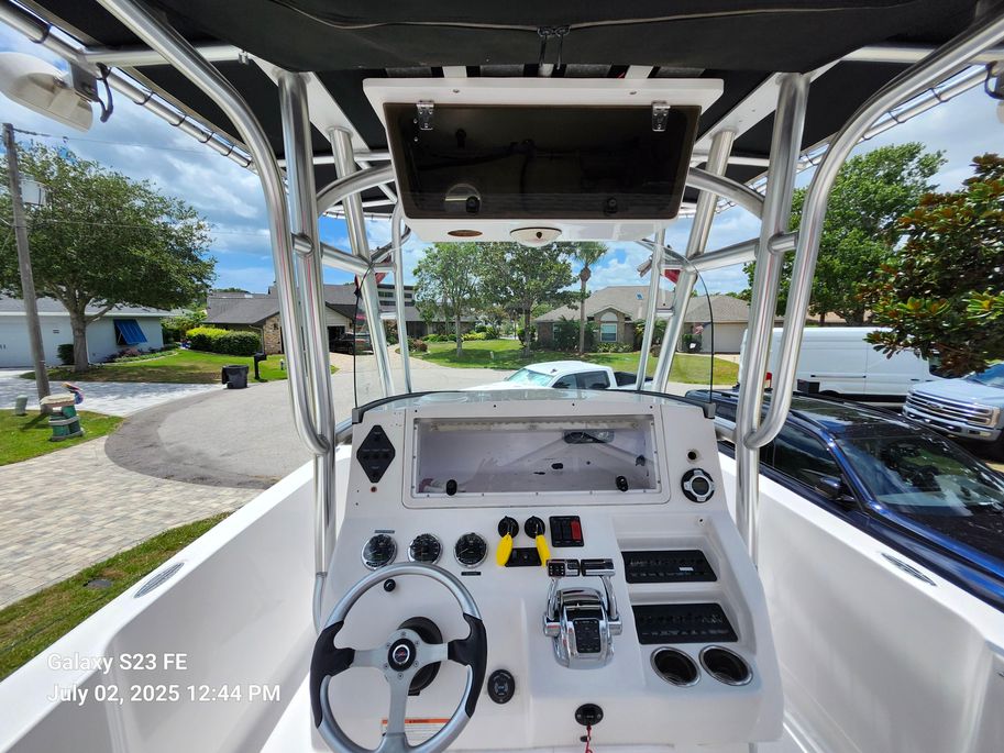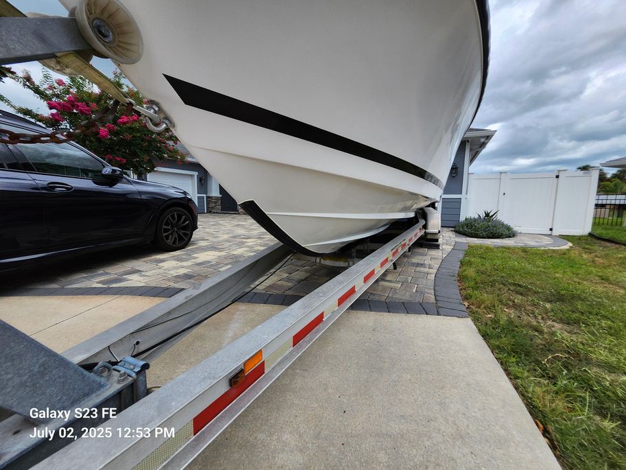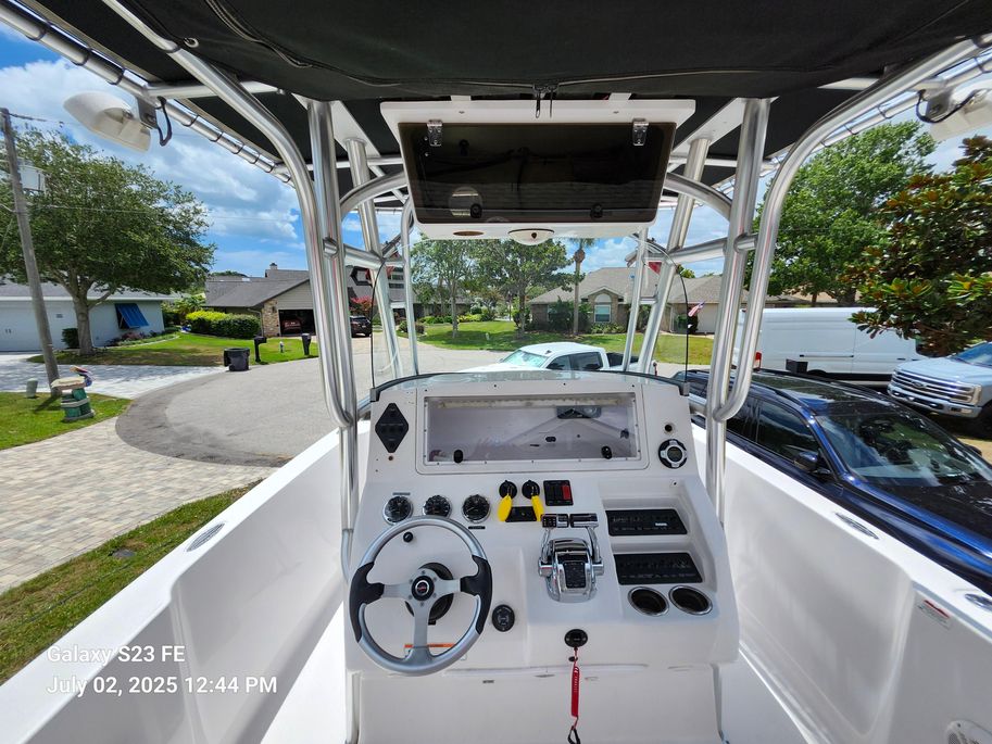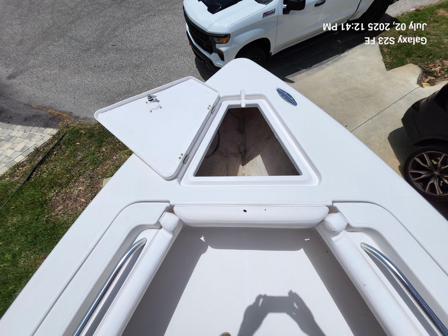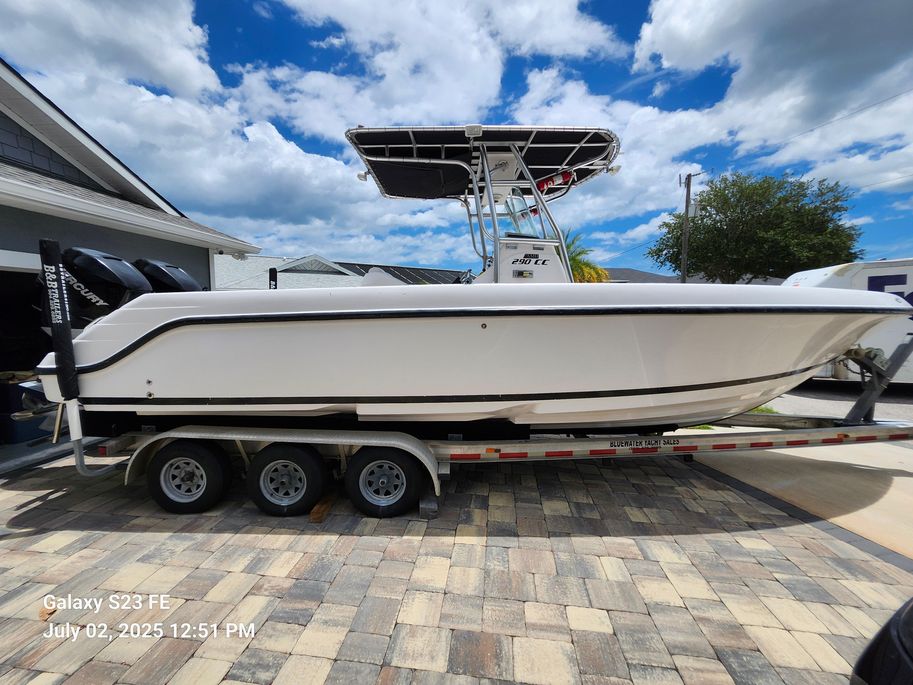 This boat is sold without any electronics (they were removed by the previous owner) which offers you a blank canvas for your personal custom electronics suite. The boat is equipped with a Sony marine stereo and multiple speakers, new AGM batteries (4/25), T-top mounted flood lights and forward spotlight, Attwood 2000 electric bilge pumps w/auto float switches, and removable 3-step dive/boarding ladder. The 2020 Mercury Verado 350s were recently installed by a local marine dealer and replaced older Mercury 250 outboards. The dealership test drove the boat after the engine replacement and described the ride as "exhilarating"!! She's ready for your personal touches and heading out for fun on the water!
