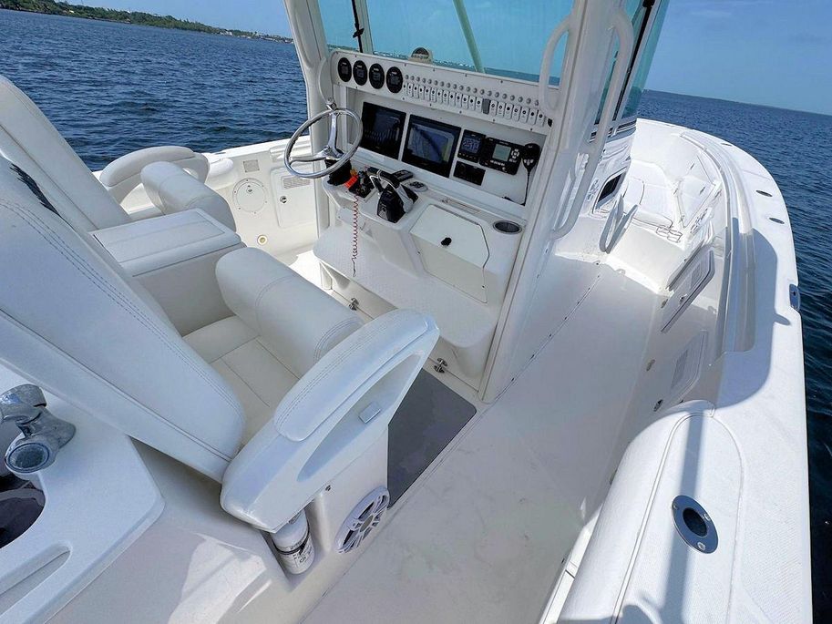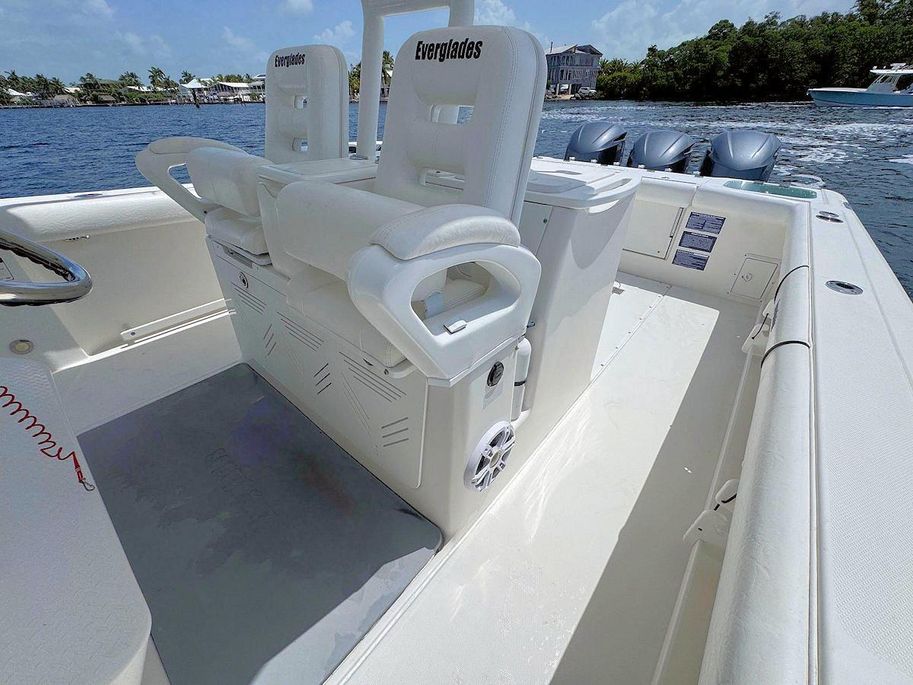 A rare, turnkey center console that blends offshore capability with top-tier comfort and fishability. Powered by triple Yamaha 300HP outboards (only 219 hours) and still under warranty through October 21, 2025, this Everglades 350CC is ready for action.