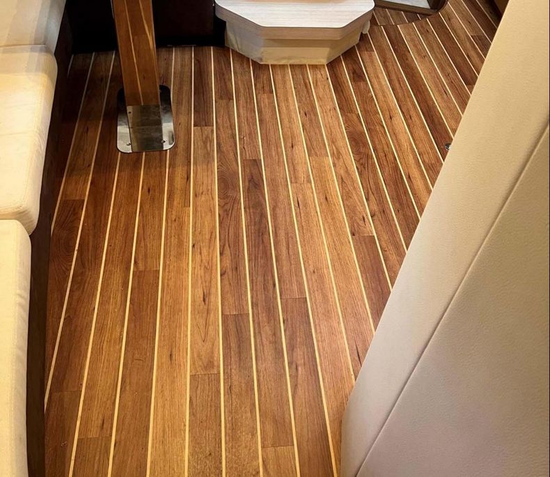 The Salon features a Samsung flat screen TV, with a Bose surround sound system, L-Shaped dinette with a Teak table, and a new sole is set to be installed in the coming weeks.