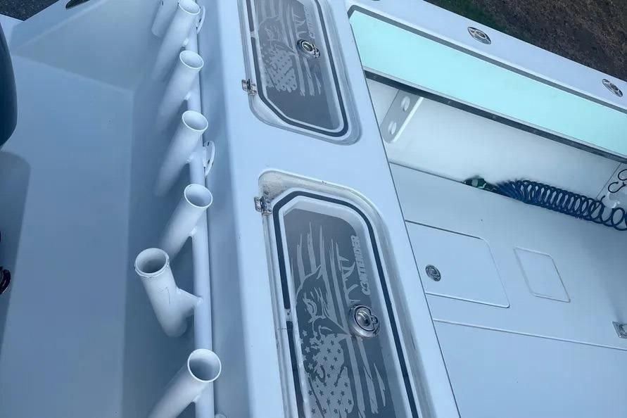 At the helm, new Garmin electronics pair with a Simrad autopilot for confident navigation on long legs and precise trolling passes. Carbon-fiber outriggers set clean spreads, and a Rhodan 36V trolling motor with a lithium bank adds spot-lock precision around wrecks and reefs. A Wet Sounds system keeps the crew energized between stops, and the included trailer (with fresh tires) simplifies haul-outs and transport.