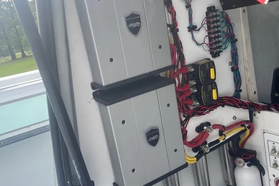 New Garmin electronics package · Simrad autopilot · Wet Sounds stereo