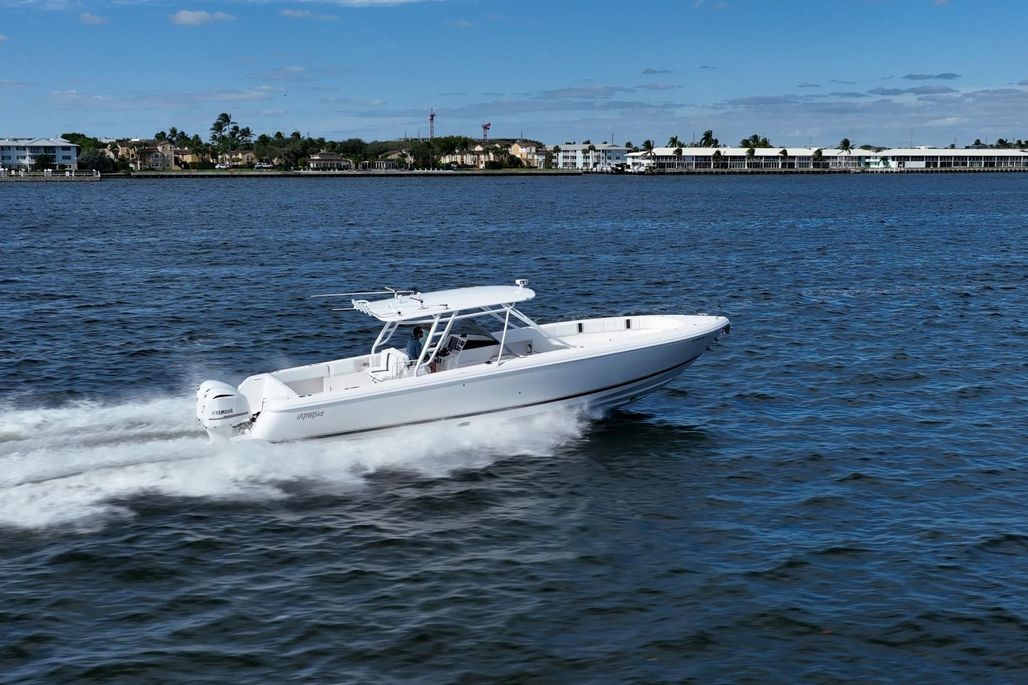 This 400 Open Intrepid is loaded. With a custom layout, no expense was spared. Extremely low hours offer longevity and peace of mind for her next owner. With adjustable coffin boxes, open cockpit, and center console, this 400 Open was made to not only fish, but to also be versatile. Go offshore, shoot over to the Bahamas, or hop around the coast because she can do it all with her extremely dry ride.