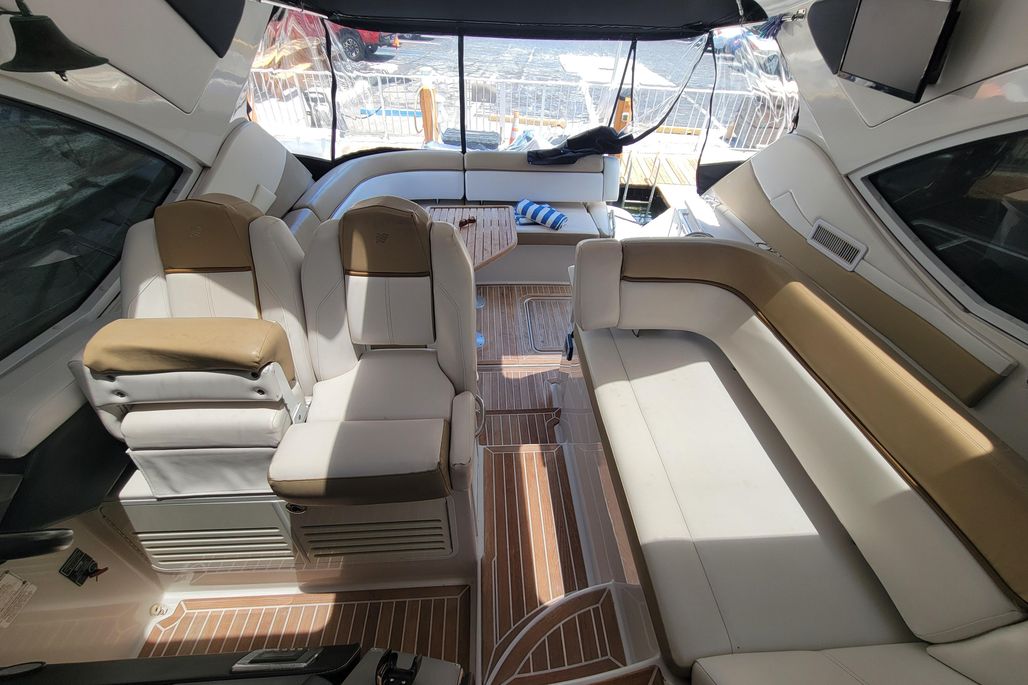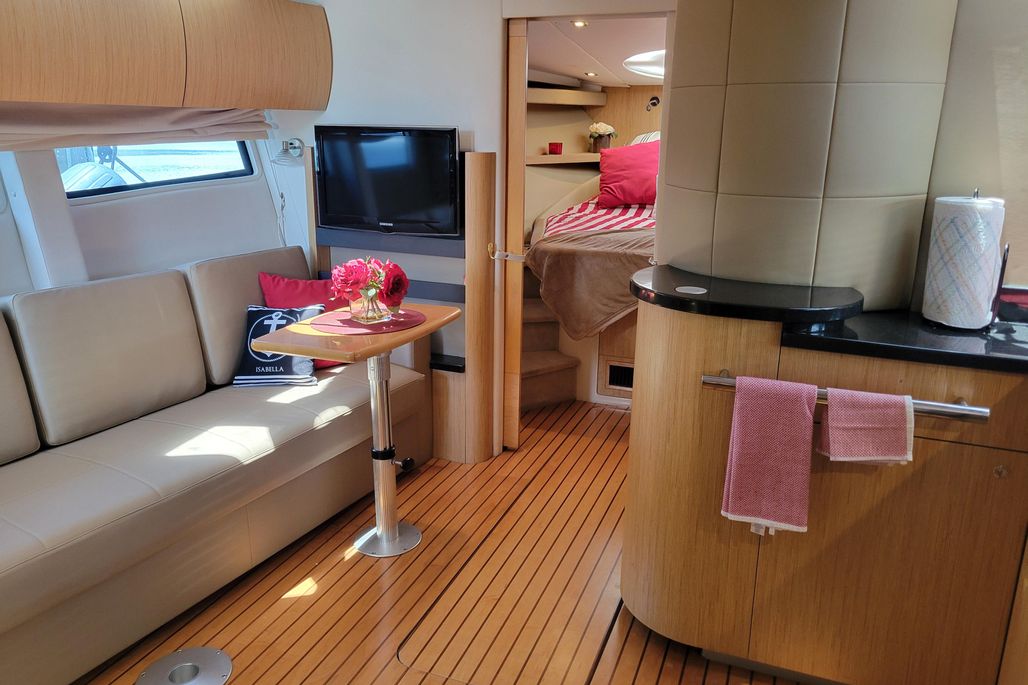 Isabella IV is a very well-appointed cabin cruiser with two heads and two cabins and a convertible salon with room to sleep six. Appointed with a voluminous cockpit under air conditioning with a large sliding hard-top, wide side decks and large easy cockpit access forward. Luxurious teak cockpit table and teak flooring, tables and hydraulic teak platform for your tender. Transome Electric BBQ grill with electric sliding transome sunbed backrest and a large platform gives you more areas to entertain. Don’t miss the opportunity to purchase a well-appointed cabin cruiser, all packed in this popular model for Four Winns. The 435 Vista was designed with a modern blend of European Design ideas and US functionality.