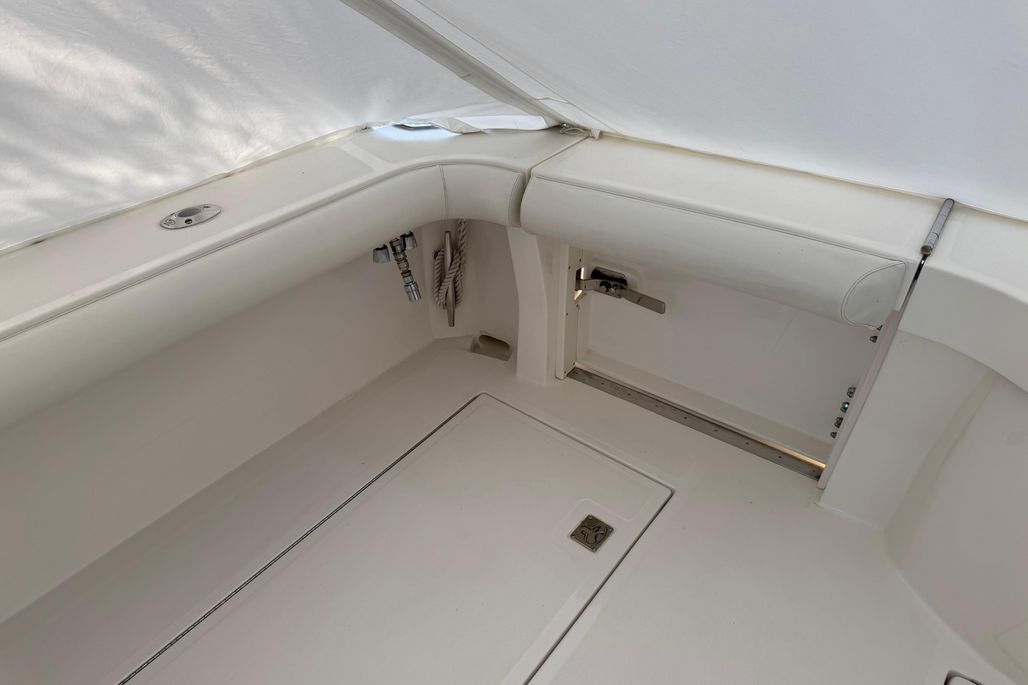 Careful planning and forethought go into the placement of every element in the cockpit - especially essentials such as the bait tank, tackle center and rod storage. Mezzanine seating provides a comfortable perch while watching the spread. Insulated fishboxes are molded into the sole and equipped with in-line macerators. Full-length piano hinges and rubber gaskets allow for a tight seal, to keep your catch fresher longer. Lures and rigging equipment are neatly organized, in a custom-designed tackle center at the rigging station. A number of additional options are also available.