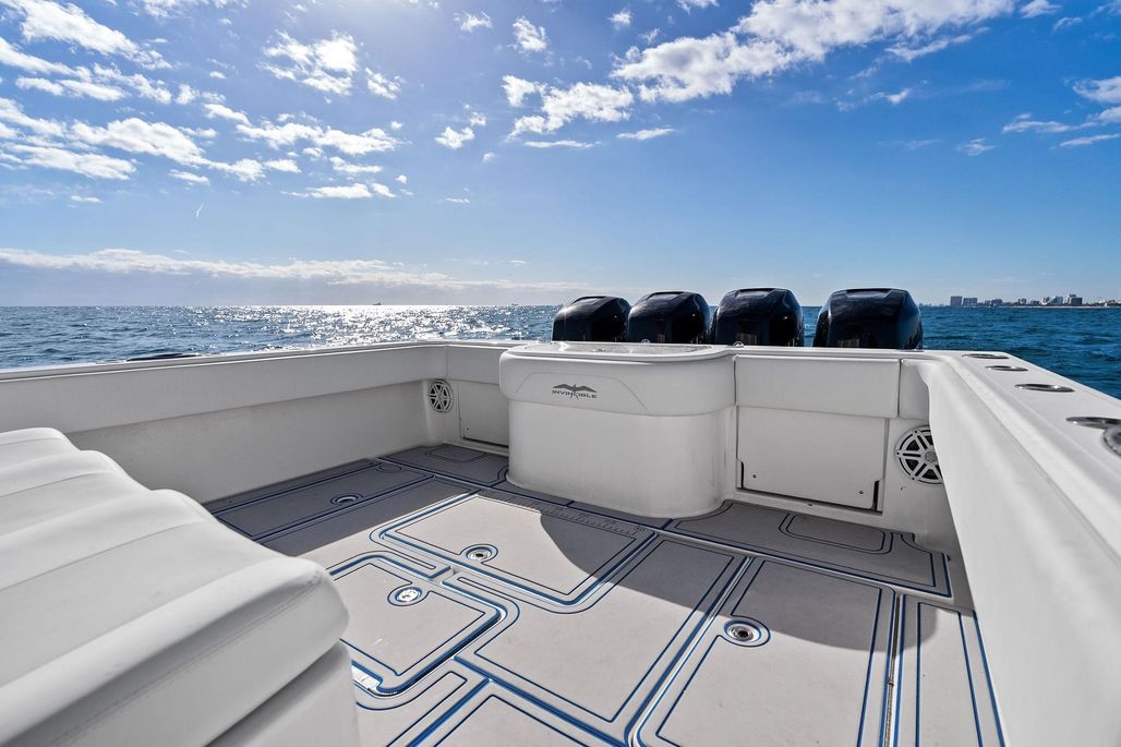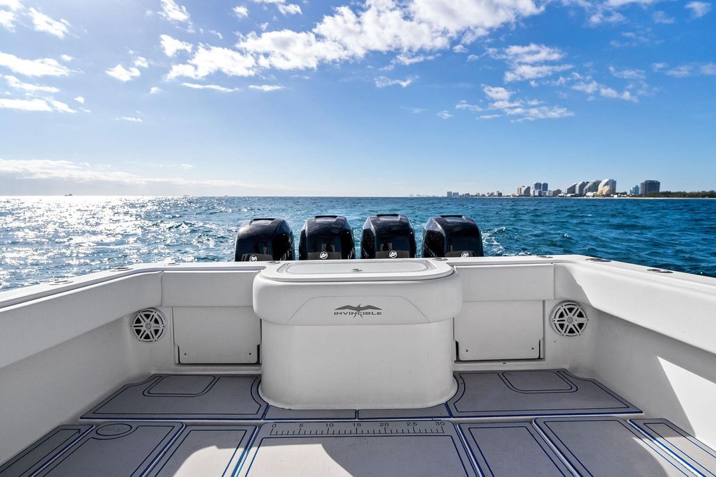 OUR TRADE, this 2013 Invincible 42 Open is a great opportunity in today's market. Features a re-power in 2019 w/ Quad 350 Verados with just 640 Hours. That means NO YAMAHA F350's and this one also has the highly desired Dive Door and front entry console! Being updated with all NEW upholstery, NEW Garmin electronics, and much more, plus the re-power, this is one of the best buys on the market for a 40' class center console. Additionally, a pre-sale structural survey was completed which came back clean with no structural issues. This is not one of the newer builds with delamination issues.