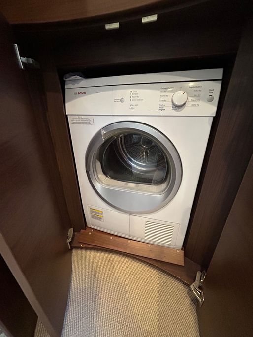 Accommodations shine with three lavish en-suite guest cabins sleeping up to 6 in king-sized luxury: a full-beam owner’s master suite amidships with a king berth, vanity, and walk-in wardrobe; a VIP forward double; and a flexible twin (convertible to double) aft. Each features high-end Avonite countertops, rainfall showers, and mood-enhancing LED lighting. Crew quarters for two include a dedicated cabin with en-suite facilities, keeping privacy intact. Air conditioning throughout ensures year-round comfort, while the upgraded North American spec adds electric cooking and enhanced generators for seamless US cruising.
