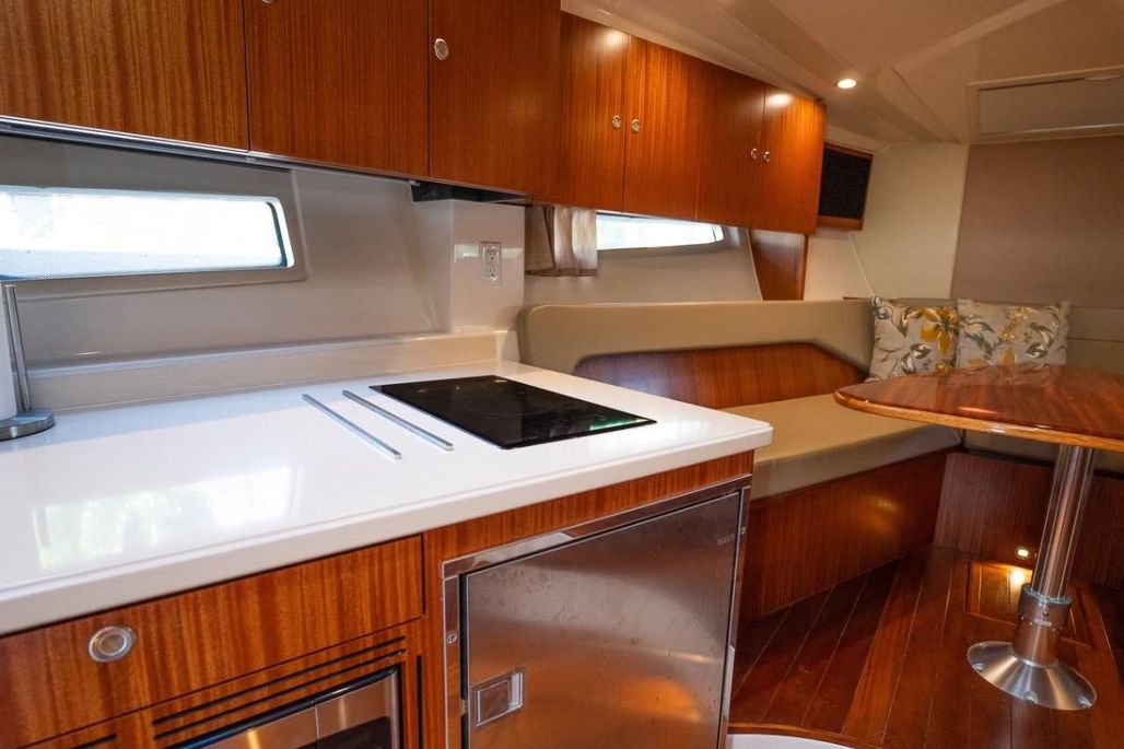 The “i” in 365i stands for integrated outboard technology—providing the performance and reliability of Yamaha power with the refined design Pursuit is known for. With its concealed engines, spacious layout, and low hours, this boat combines performance, quiet cruising, and stylish comfort.