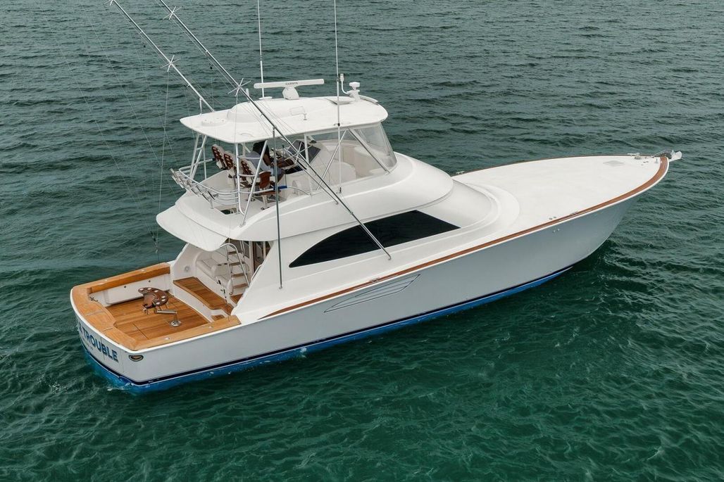 Triple Trouble, 2014 62 Viking is a proven tournament winner that blends high performance fishing capabilities with the comfort and elegance Viking is renowned for. She is powered by twin 1800HP MAN V12 diesels for speed and efficiency, and equipped with a new seakeeper 26 for exceptional stability at rest or underway.