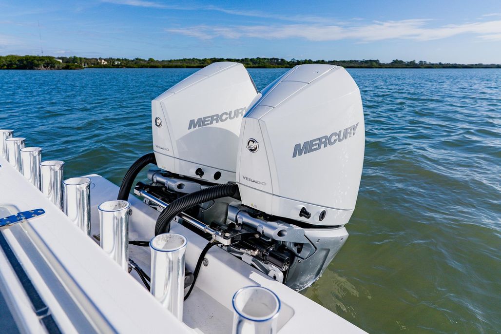 Twin 2023 Mercury 300 HP V8 engines with approximately 400 hours and warranty through 6/8/2026.