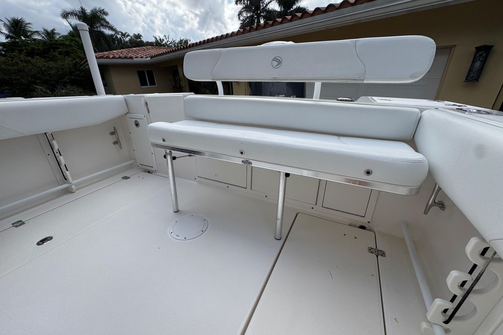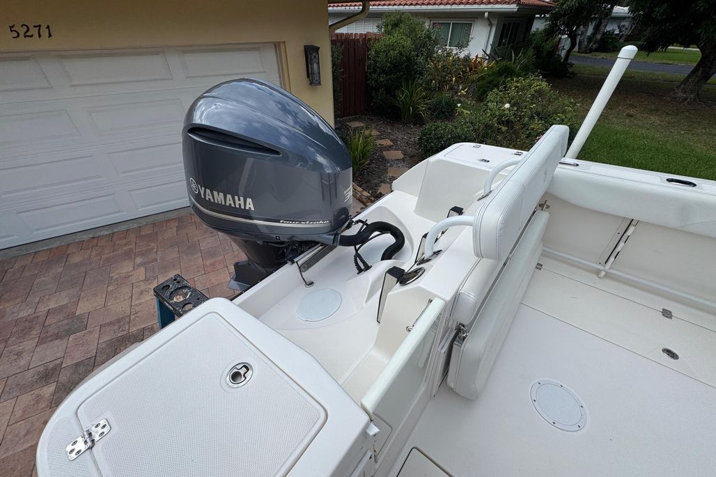 Yamaha 300HP (low hours, peak condition), Garmin GPS, Fusion Premium Sound, T-Top with electronics box and rocket launchers, ample rod storage, livewell, and fish boxes. Forward seating with cushions and convertible bow table. High quality finish throughout..meticulously maintained!