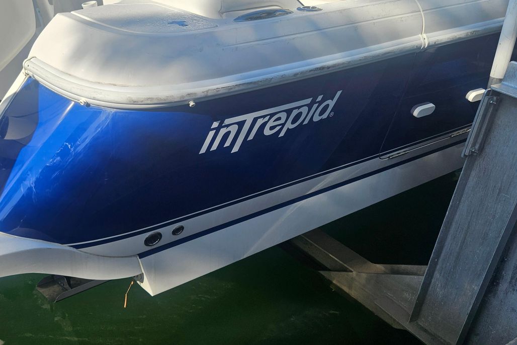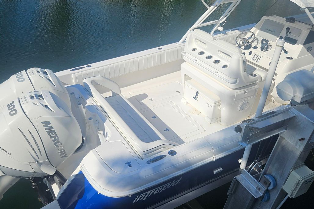 Expansive freeboard tops stylish new sheer and tumblehome transom lines. Signature Intrepid comforts include a spacious head and changing room hidden in the console, plush wraparound forward seating with electric backrests, and integrated or removable rear bench seating.