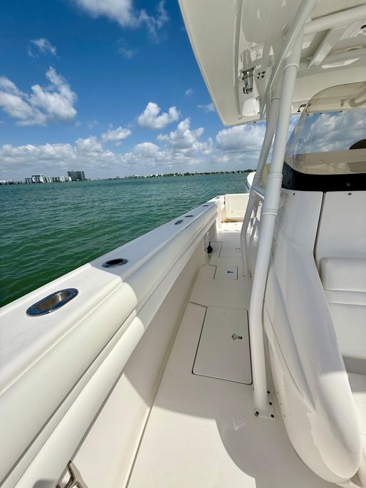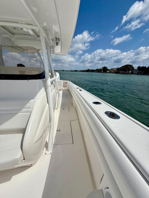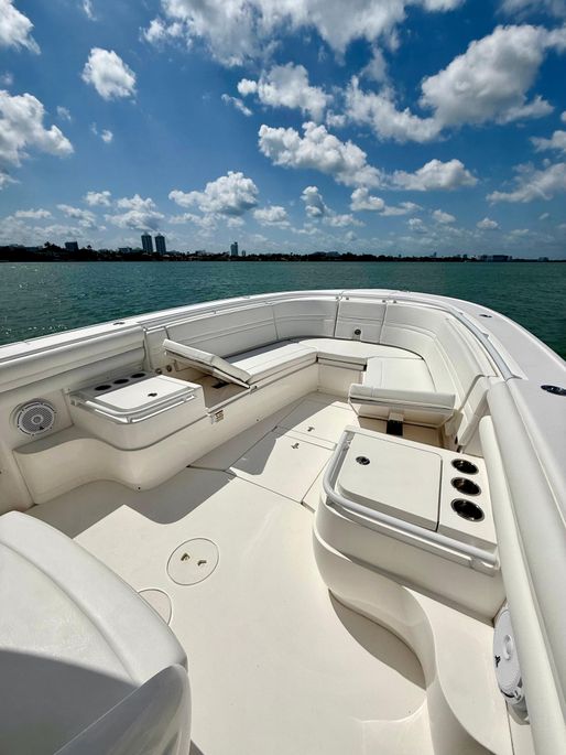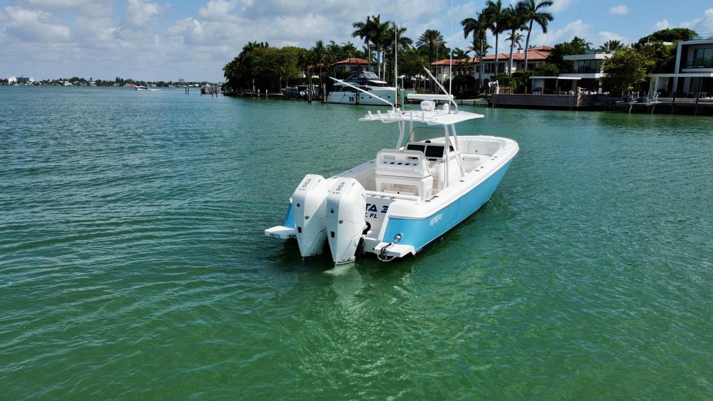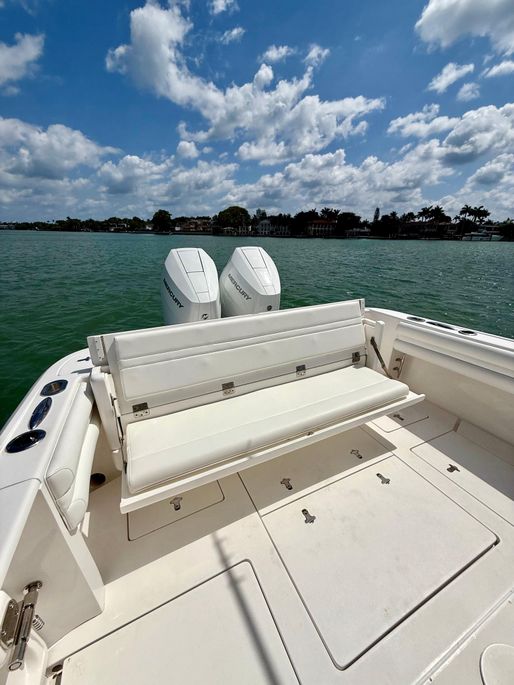 Turn-key and exceptionally maintained. Repowered in 2024 with twin Mercury V10 400 HP Verados (140 hours, fully serviced). Service records available.