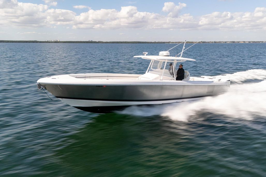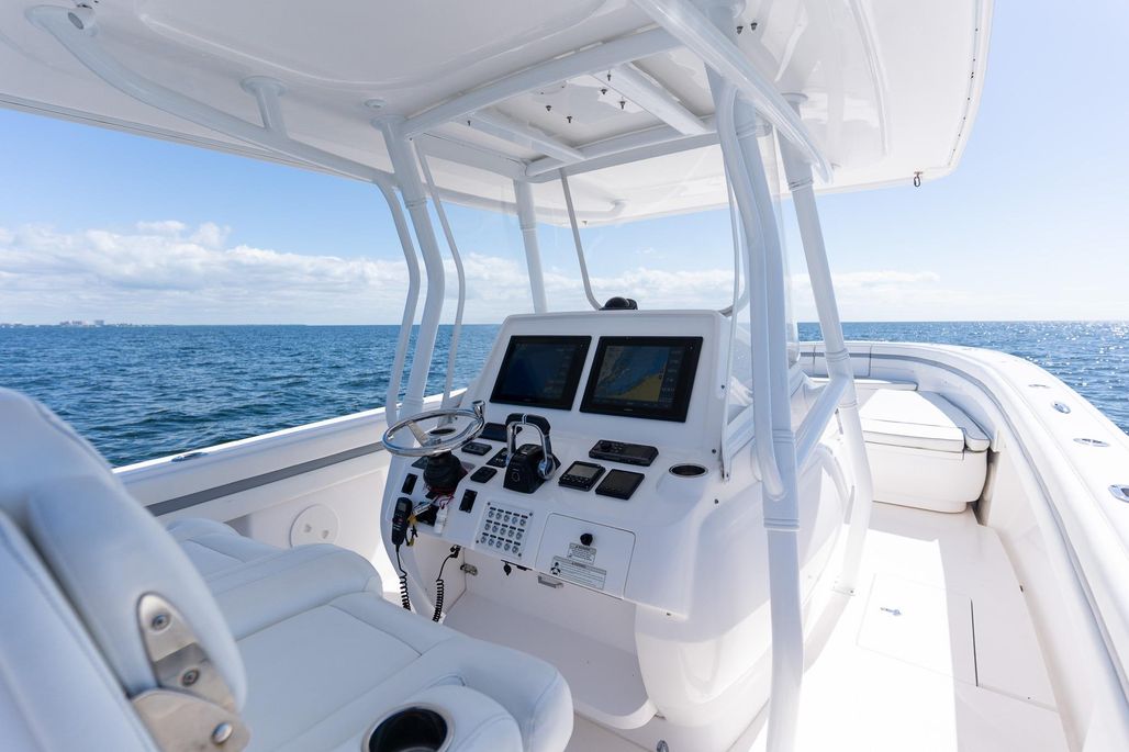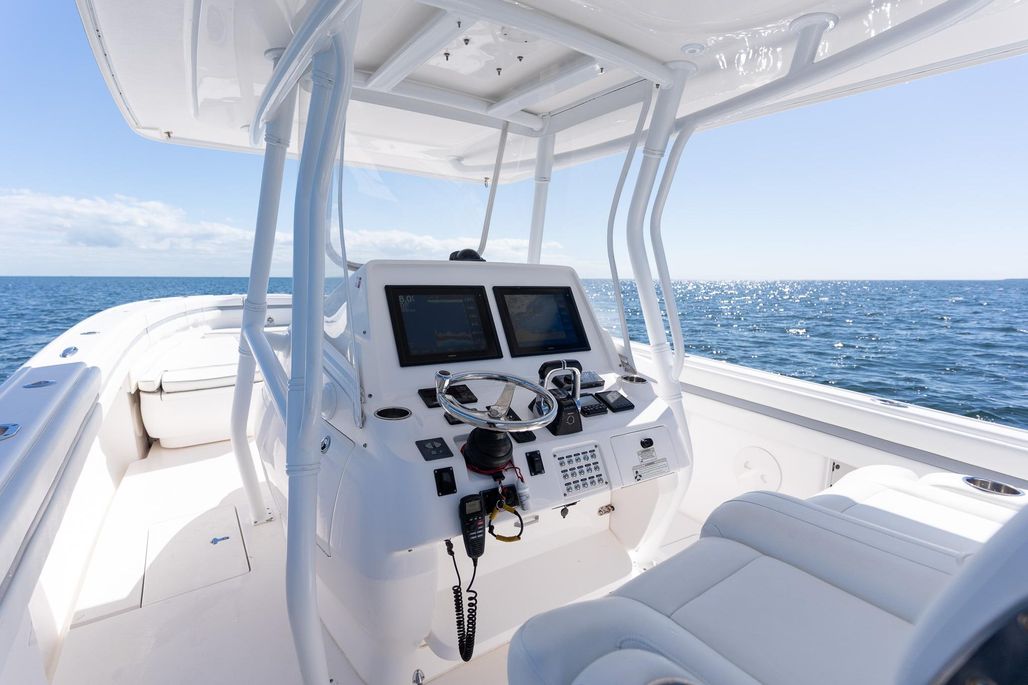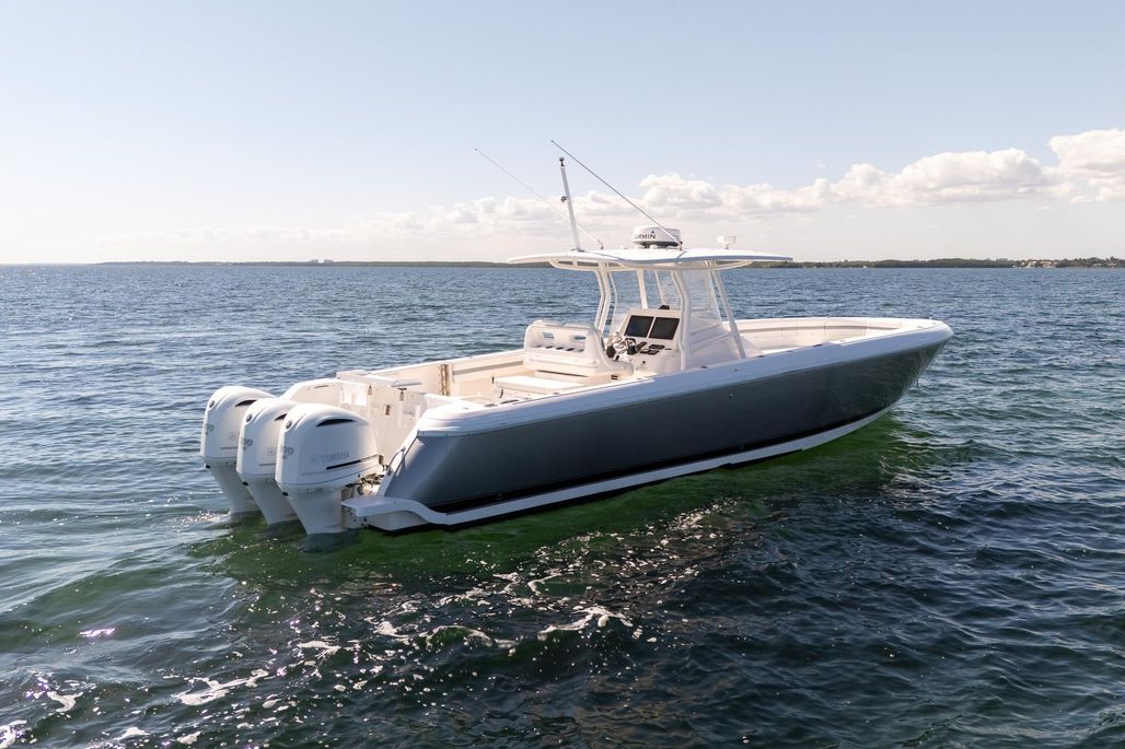 Introducing the 2015 Intrepid 400 Center Console, a remarkable vessel that combines performance and style. Measuring an impressive 40.08 feet in overall length, this boat features a robust fiberglass hull with a Deep Vee shape, ensuring a smooth and stable ride even in challenging waters. Powered by three Yamaha F300 outboard engines, each delivering 300 horsepower, this boat offers exhilarating cruising speeds of up to 45 mph and a maximum hull speed of 58 mph. With 1018 hours of experience, these engines are well-maintained and ready for adventure. Designed for comfort and convenience, the Intrepid 400 accommodates up to 15 passengers, making it perfect for family outings or entertaining friends. An electric windlass enhances ease of use, while the joystick control adds precision to your navigation. This used center console is an excellent choice for those seeking a blend of power, comfort, and reliability on the water.