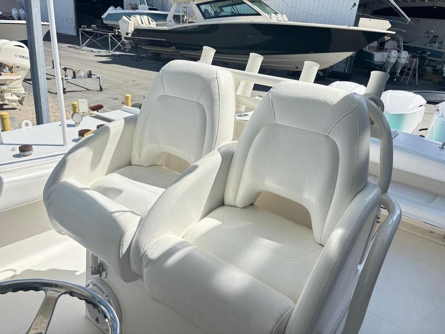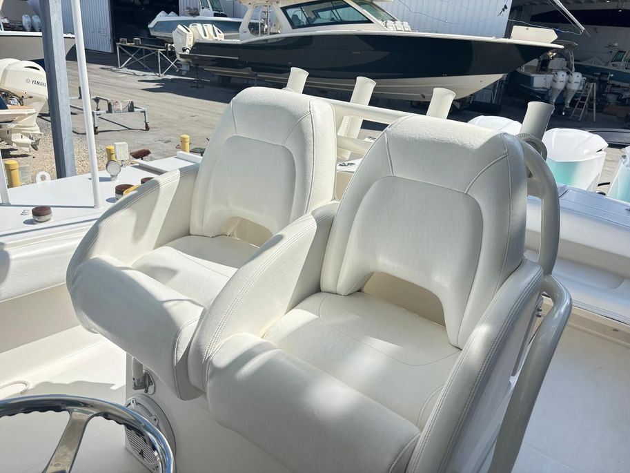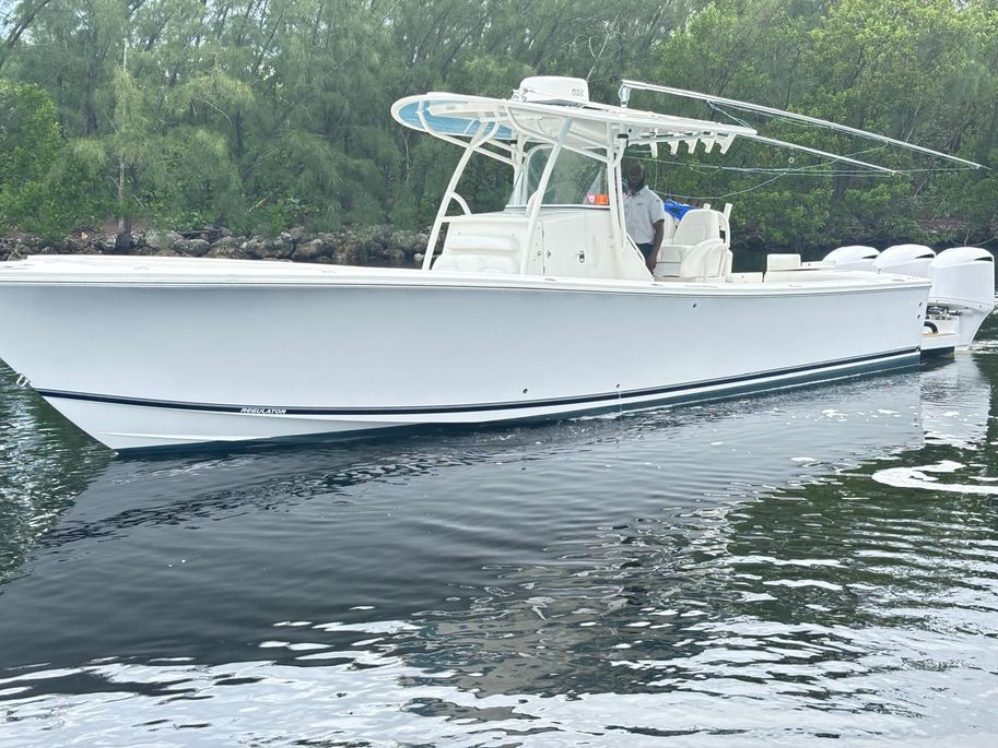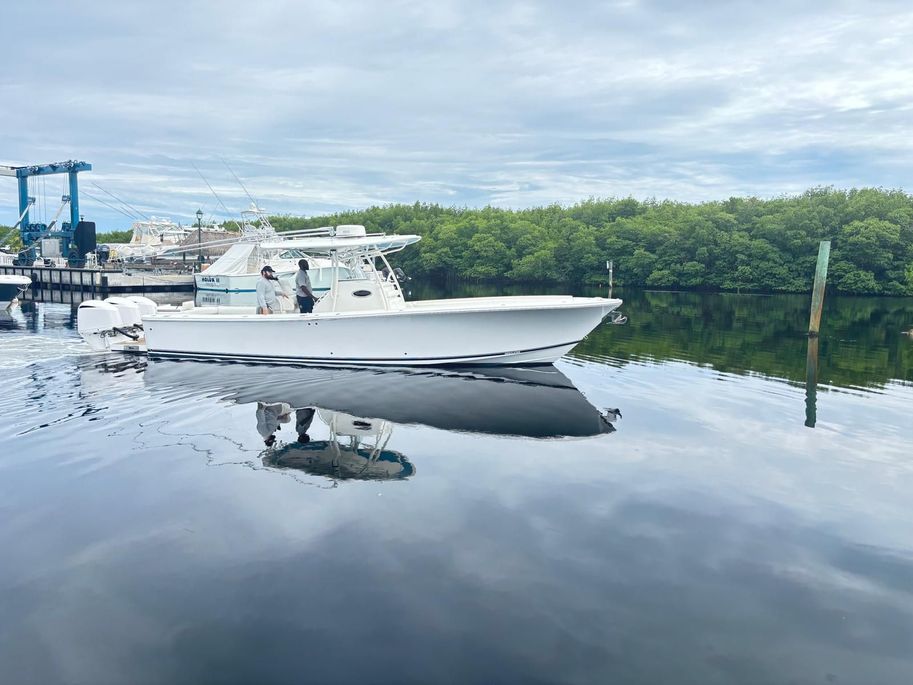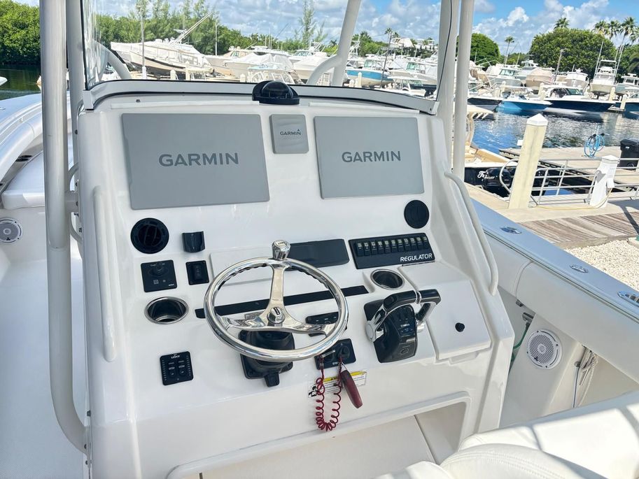 This Regulator 34 CC is engineered for the discerning boater who demands the best. The triple Yamaha engines ensure a smooth, powerful ride, making it the perfect choice for fishing excursions or leisurely cruises across the sparkling water.