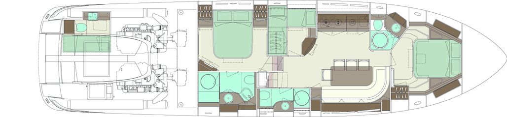 With this yacht Riva has reinterpreted the concept of an open yacht characterized by a typical Mediterranean style while preserving the unmistakable elegance of the entire range: class, charm and a sober look. Designed with an eye to the outer lines of the Vertigo - a very successful classical model in Riva’s range - the 63’ Virtus also draws inspiration from the Rivale’s strong personality, while also ensuring more spacious areas that guarantee excellent livability and total onboard comfort. This last-generation open craft has been conceived as a sporty yacht, created for an Owner that wants to experience the sea first-hand.