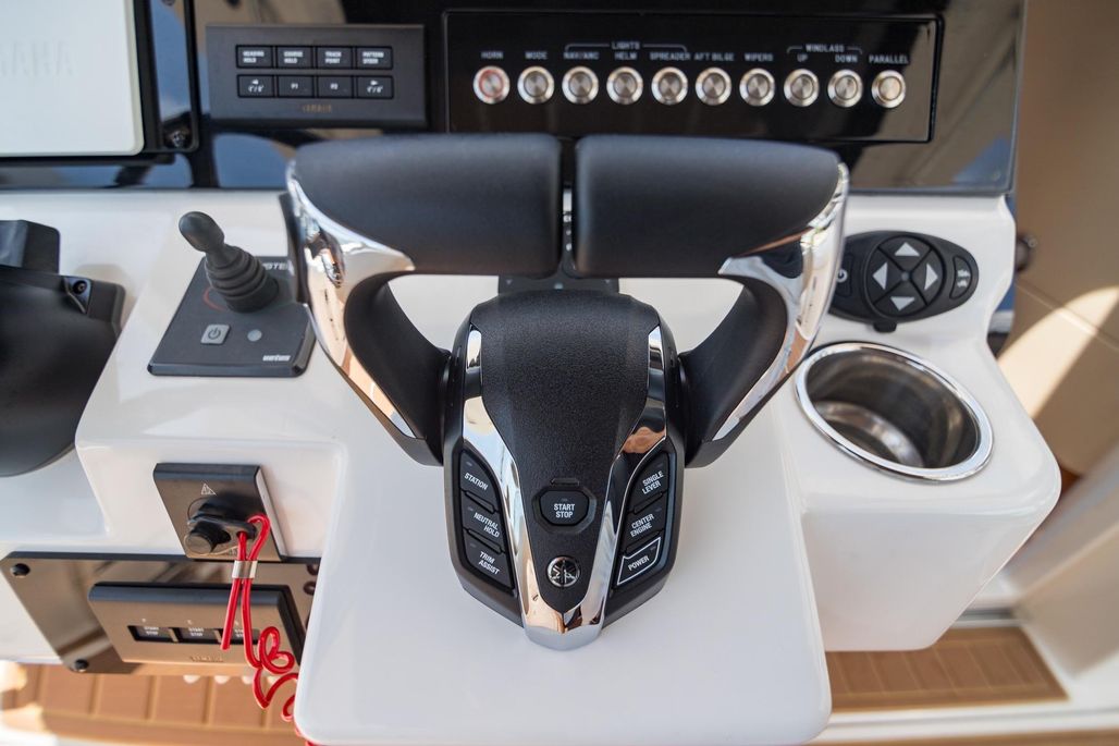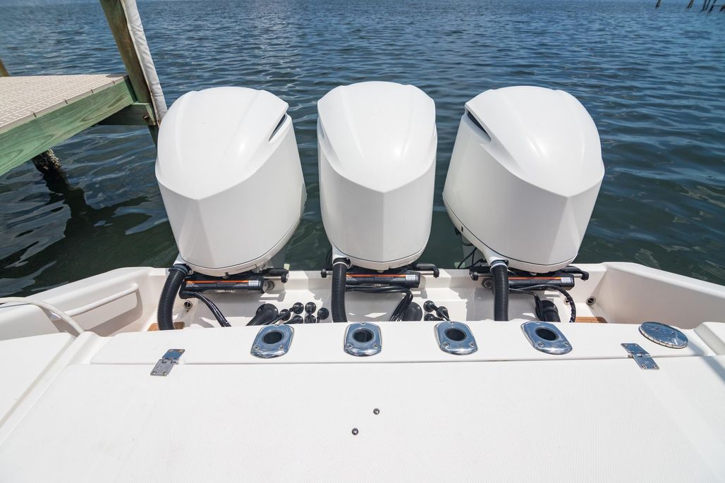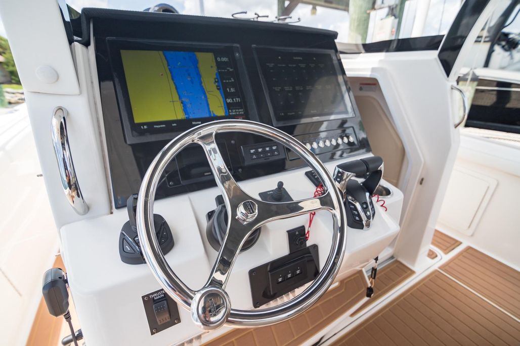 2016 Edgewater 368 Center Console for sale in Rockledge, Florida. All new (2025) Yamaha Helm Master EX digital electric steering, autopilot panel, display and joystick giving you ultimate control over the triple 300 hp Yamaha 4 stroke outboard engines with just over 600 hours. Gone the trouble prone hard to find parts almost 10 year old Optimus electronic/ hydraulic.