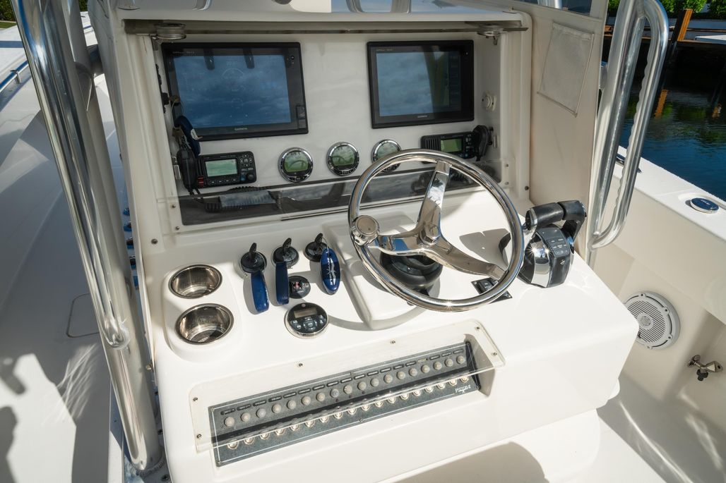 This 2016 Invincible 36' Open Fisherman is the ultimate blend of luxury, performance, and serious offshore fishing capability — built for anglers who refuse to compromise on style or speed. With a deep-vee fiberglass hull and powerful triple Mercury Verado outboards, she delivers a smooth, confident ride and thrilling performance whether you’re heading to the Bahamas or cruising down the coast. The boat’s spacious layout is thoughtfully outfitted for both comfort and functionality, featuring premium cockpit amenities, abundant rod holders, insulated fish boxes with pumps, and Garmin electronics. From the custom leaning post with tackle storage to the additional livewells, and five electric reel outlets, every detail has been optimized for chasing fish. Meticulously maintained with a recent engine service, this 36' Invincible represents exceptional value for a serious sport-fisherman that doesn’t skimp on comfort or quality — ready to take you on unforgettable adventures on the water.
