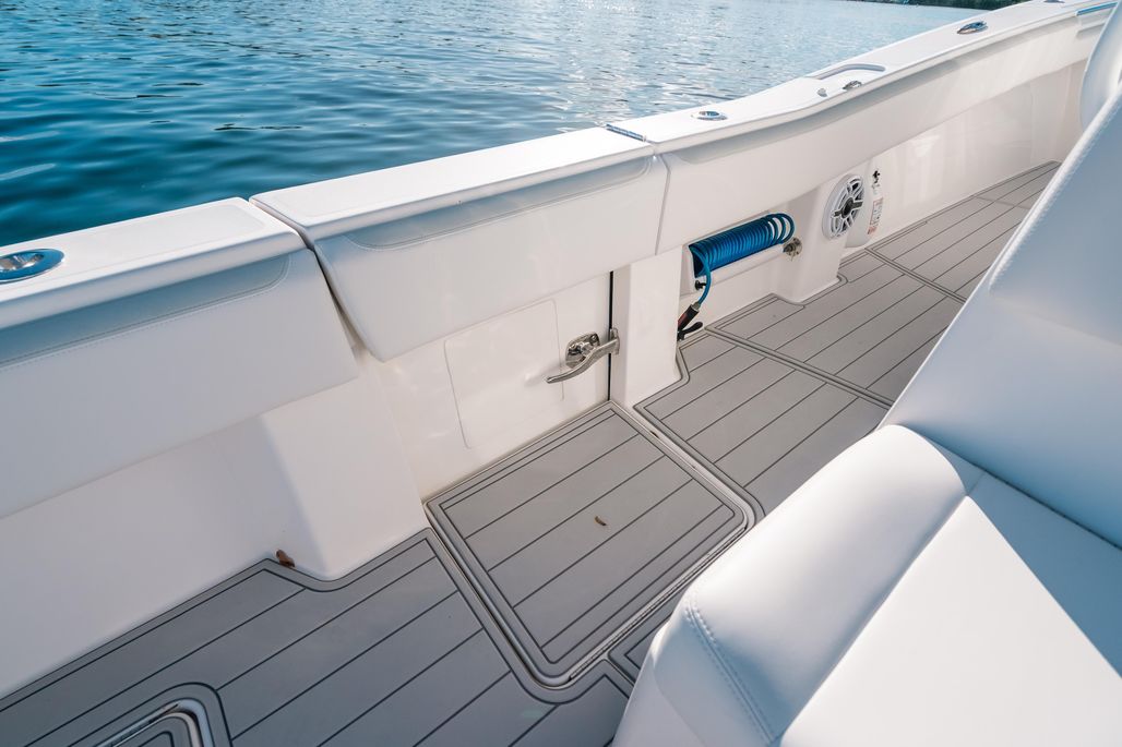 In 2025, the boat received significant upgrades including new upholstery, SeaDek, isinglass, and updated electronics, giving it a refreshed, modern feel throughout.