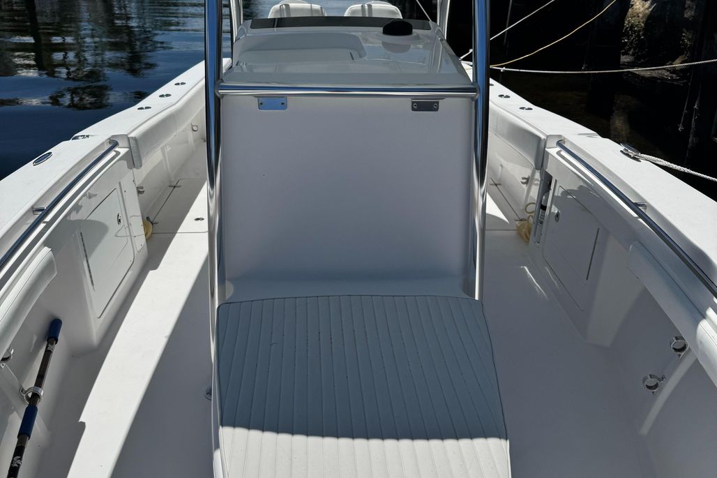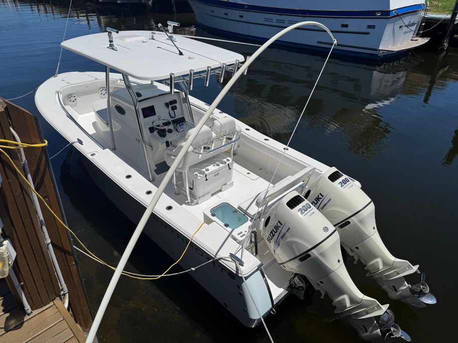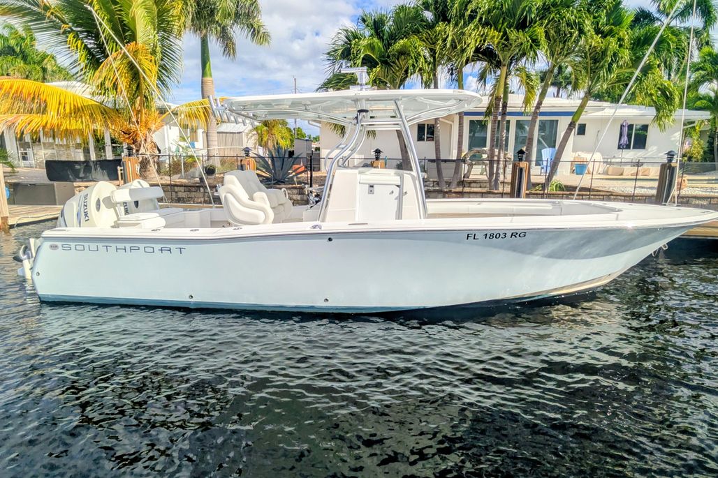 The 2016 Southport 272 Tournament Edition (TE) is a 29-foot center console designed for offshore performance and sportfishing functionality. Built on a vacuum-infused composite hull with a 22-degree deadrise, the boat offers a dry and stable ride in a variety of sea conditions. It features a wide 9'6" beam and a variable deep-V design for improved handing and comfort.