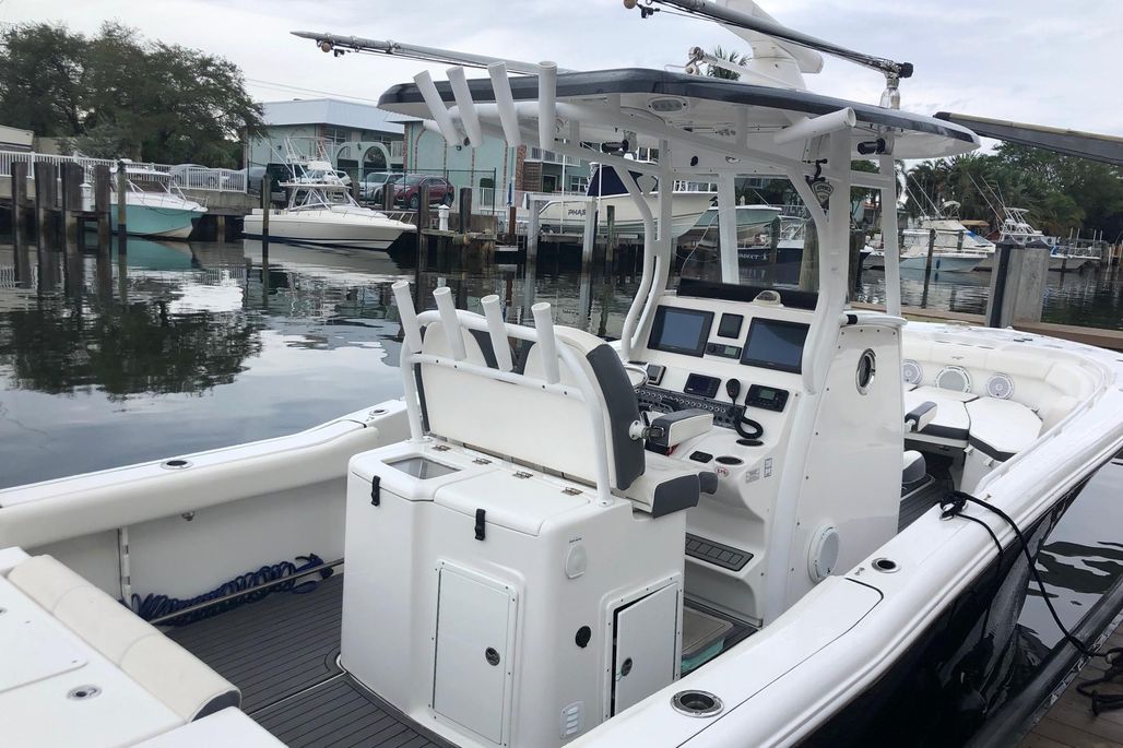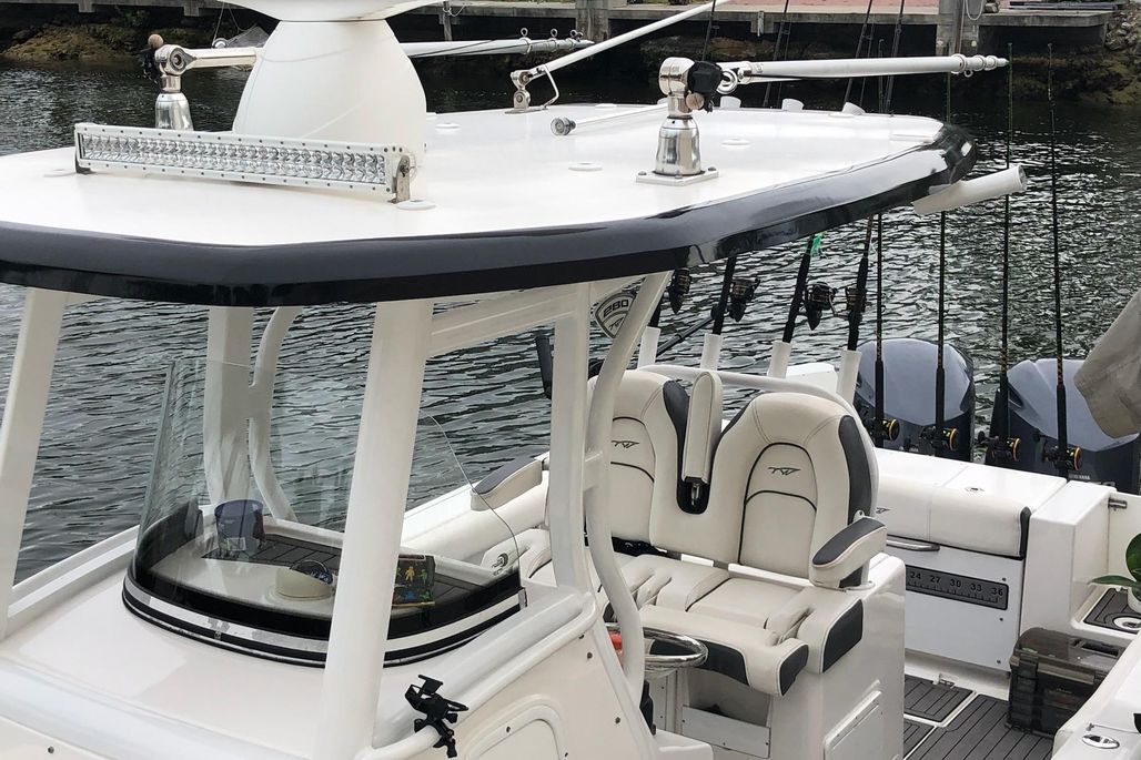 The dual Yamaha 250 provide efficient and reliable power for trips to the Bahamas and the sandbars at home. The full Garmin electronics package is what you’d normally see on a much larger yacht. Open array RADAR and powerful transducers help finding fish. She’s been serviced, has fresh batteries, and has always been kept indoors.