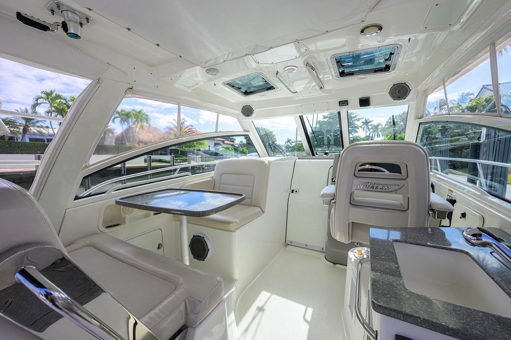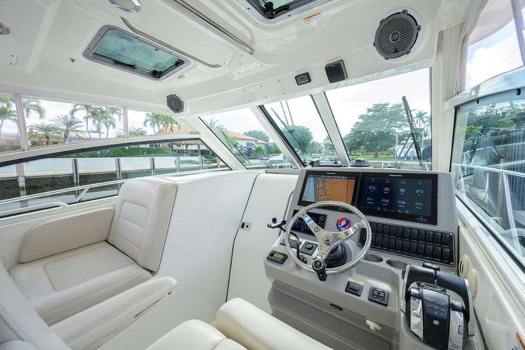 F-Troop is a very clean and well maintained 2017 Boston Whaler 345 Conquest with BRAND NEW Mercury power at a cost of nearly $100,000. She’s loaded with options including joystick control with autopilot and skyhook to make docking and maneuvering a breeze. She was just recently bottom painted and fully detailed inside and out. F-Troop is powered by brand new Mercury 300s with zero hours and just 300 hours on her generator. She has been meticulously cared for, and extensive service records are available. New steering pumps just recently installed. Owner has maintained her with an open checkbook, and you will not find a cleaner 2017 on the water!
