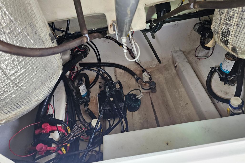 Electronics include twin Garmin 12 inch Gps/ Fishfinder screens, vhf radio, Bluetooth stereo with six speakers, Lenco Trim Tabs, Three AGM Batteries with a three-bank battery charger. Seastar power assist steering, fresh and raw water washdowns.