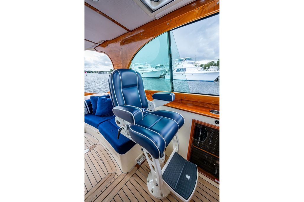 - Hinckley’s 2nd generation integrated “JetStick II” control system with Hinckley’s “H-Lock” automatic positioning and heading lock feature; fingertip control of vessel steering, motion (fore, aft and side) and position.