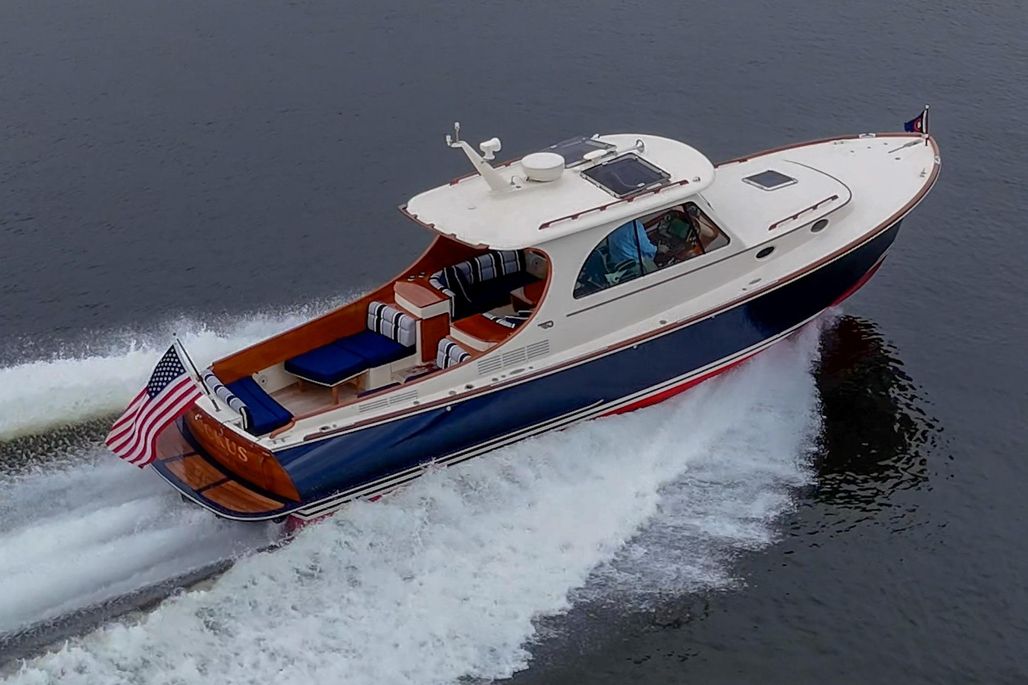 Construction of the hull is Hinckley DualGuard® Composite Construction Kevlar E-glass hybrid outer skin and Carbon-fiber inner skin. SCRIMP® laminated with vinylester resin. Deck and cockpit are E-glass with closed-cell foam core, SCRIMPED with vinylester resin.