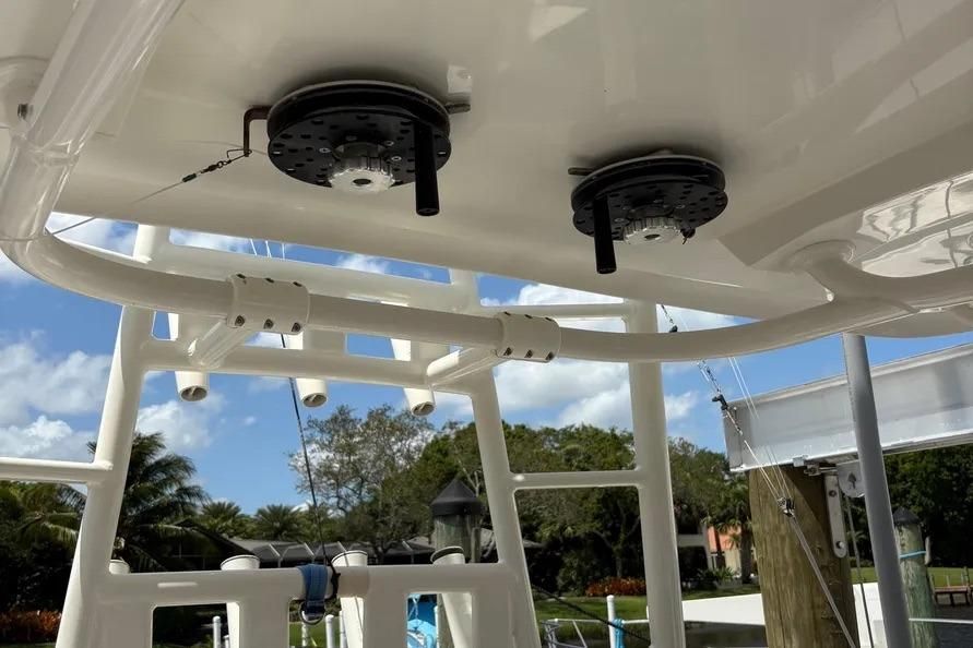(2) macerated in-deck fish boxes · 40-gal livewell · Electric Maya Epoch teaser reels + manual teasers at main helm · Outriggers · Cockpit cushions · Full cover