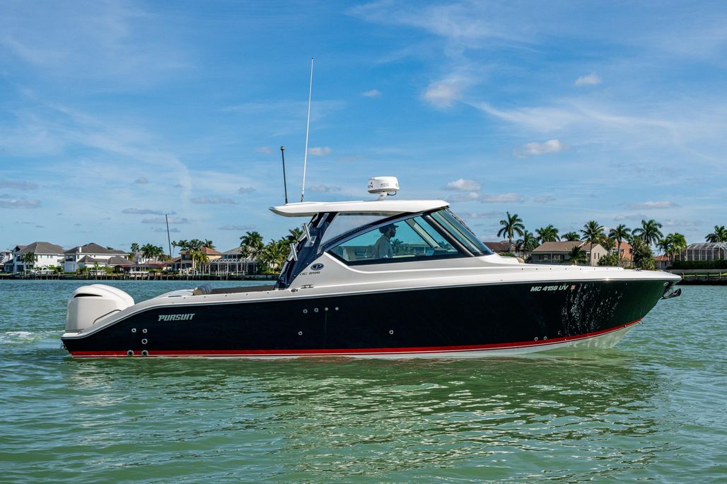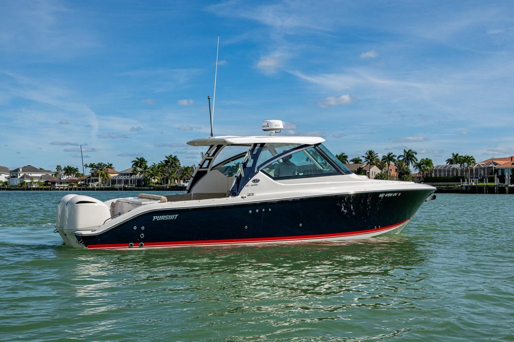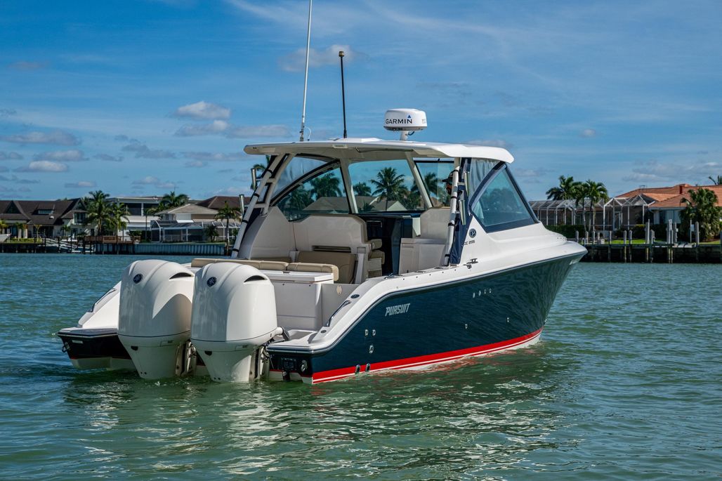 The Pursuit DC 295 sets the standard in the dual-console market, building upon an award-winning design known for its exceptional style, performance, and versatility. This model features a sleek integrated hardtop, a crystal-clear laminated windshield, and thoughtfully engineered seating configurations that effortlessly transition between cruising, entertaining, and watersport activities. Every detail reflects Pursuit’s commitment to luxury and functionality, with dedicated storage solutions and premium materials throughout.