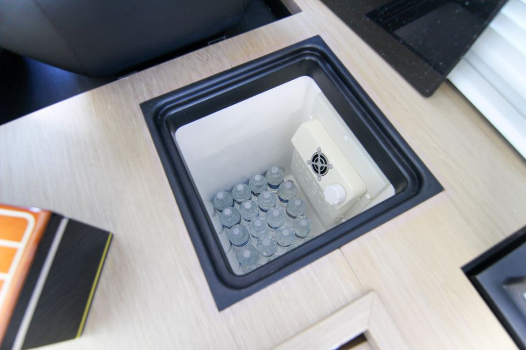 Sporty and sleek, it’s stunningly crafted to perfectly balance style with practicality. An electric lowering door between the saloon area and the cockpit, allows the craft to adapt for different climates and create a seamless entertaining space with uninterrupted views.