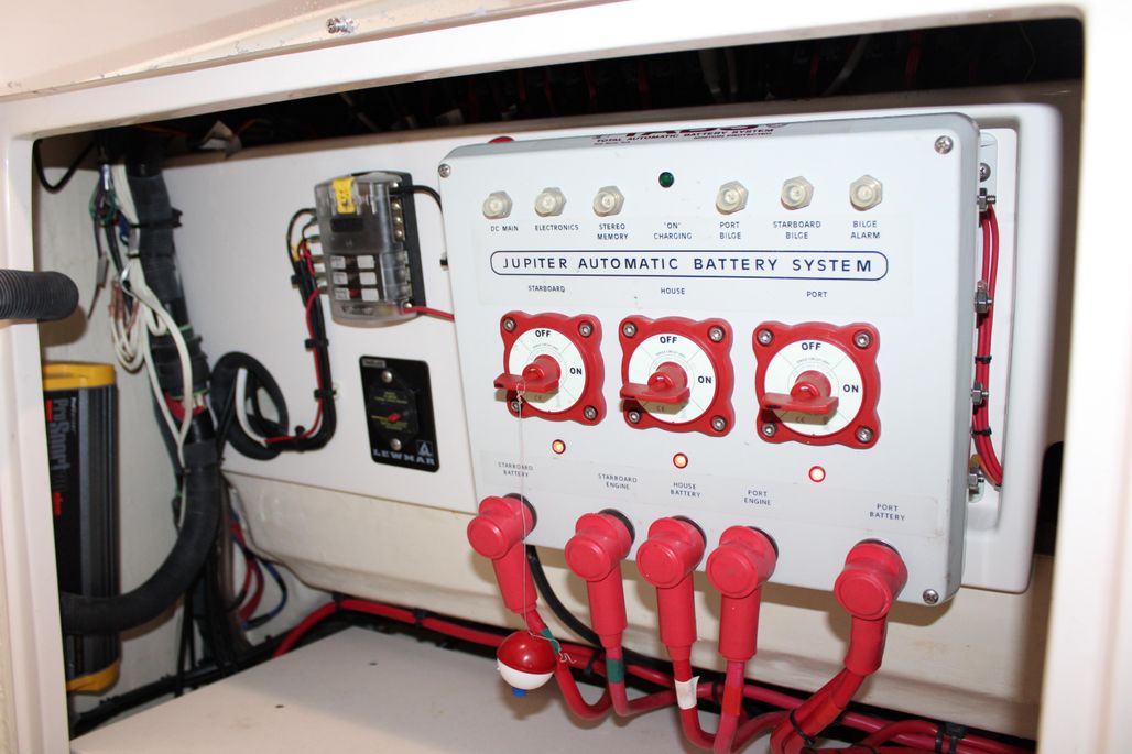 Hi-water bilge alarm, bilge pumps (2x 2000 GPH), and vapor-proof battery switches