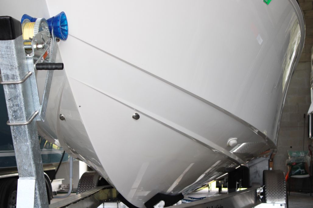 Stainless steel hardware, flush-mounted deck fittings, and heavy-duty rub rail