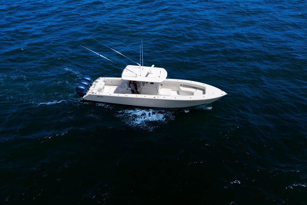 With wide beam, centerline fuel tanks, and ample freeboard, she's a stable and comfortable ride. She has the most sought after extras including Garmin multi function displays, Fusion stereo system, underwater lights, and carbon fiber outriggers!