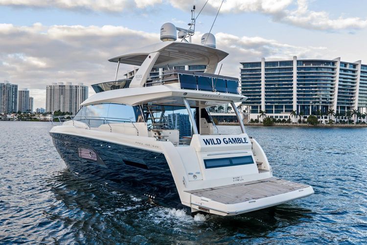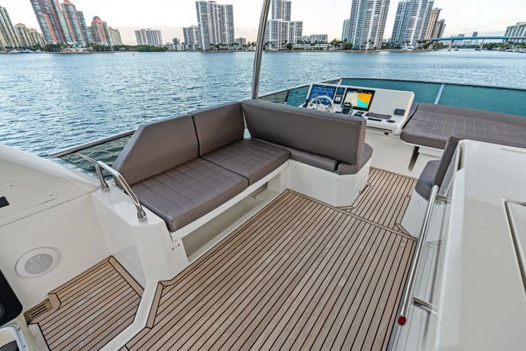 This 2018 Prestige 630 Flybridge is a highly desirable luxury motor yacht offering exceptional volume, a three-stateroom, three-head layout, and a full-beam master stateroom. With her expansive flybridge, aft galley configuration, and owner operator- friendly design, she delivers the space and comfort of a larger yacht in a highly efficient 63-foot platform.