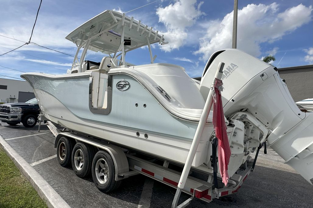 Sitting on a 2018 Magic Tilt triple-axle trailer, this Sea Fox 328 Commander is turnkey and ready for your next adventure — no waiting, no drama. Just hook up and go.