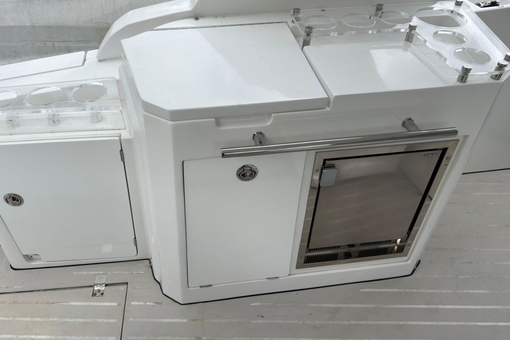 We are pleased to present this exceptional 2019 Azimut 40 Verve, currently on the hard in Fort Lauderdale. This high-performance luxury yacht is powered by triple Mercury Verado 350 outboard engines, each with 500 hours. The engines have been recently serviced, including the replacement of water pumps, ensuring optimal performance. Additionally, the generator has been recently serviced, providing reliable power for all onboard systems.