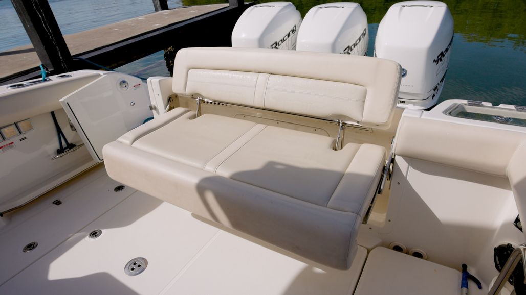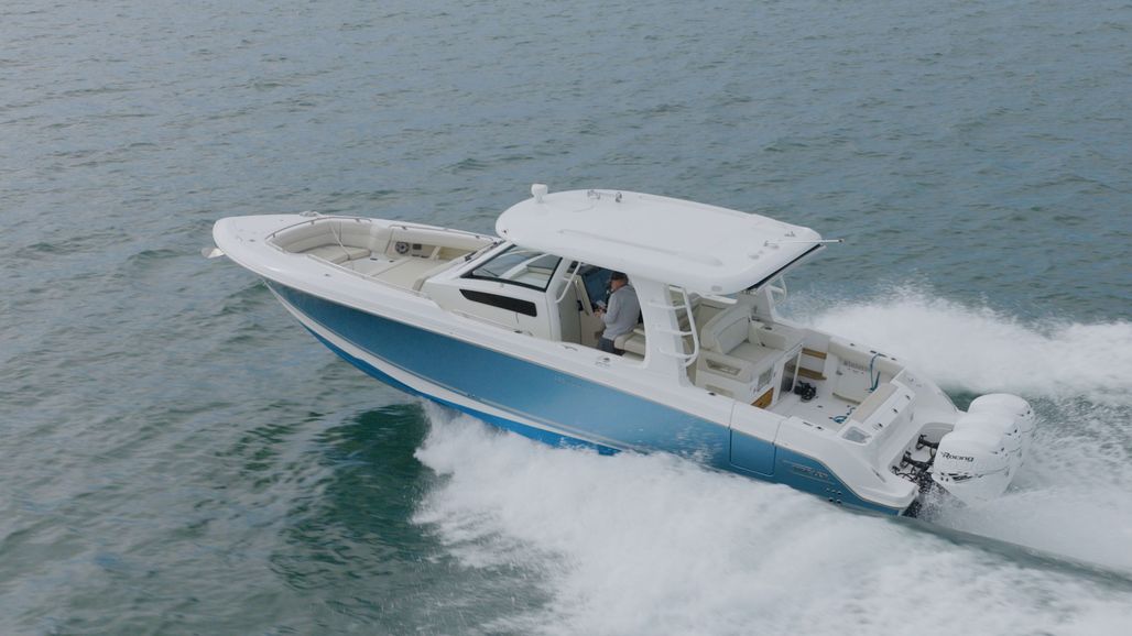 From cruising dockside restaurants to overnighting in the islands to pursuing pelagic big game, the 350 Realm is a sleek and stunning express cabin cruiser that brings all the comfort, performance, and angling features you expect from the legendary Whaler name. A sophisticated layout provides a refined experience inside the luxurious cabin, a commanding helm experience thanks to the intuitive Simrad® interface, and a deck design that seamlessly combines angling prowess and an inviting entertainment experience. With peerless and performance amenities, this 35-ft. express cruiser boat lets you feel at home on the water in a craft suited for any offshore adventure.