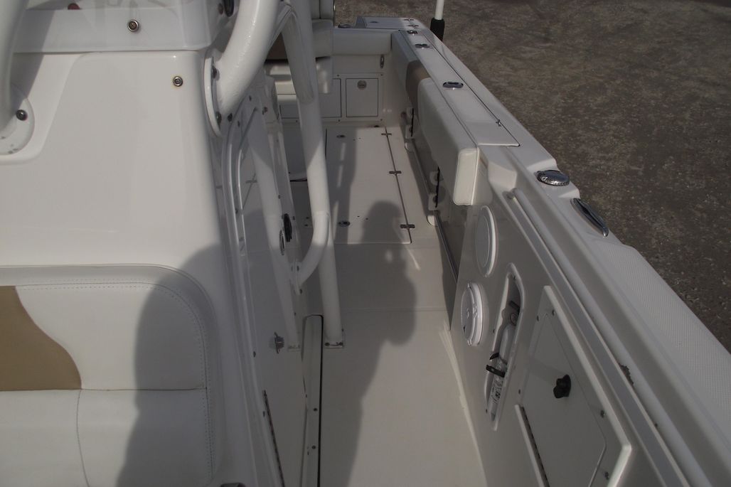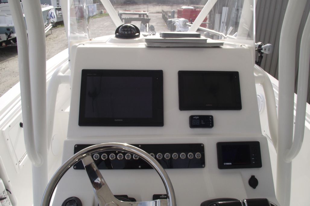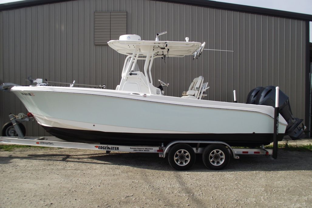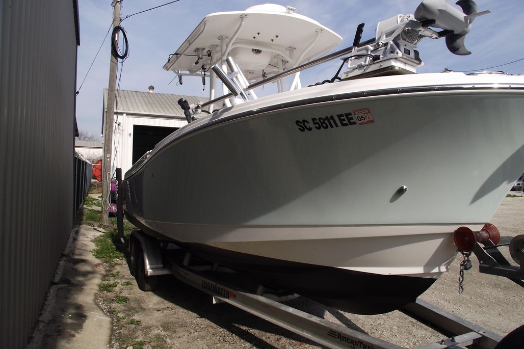 Introducing the 2019 Edgewater 245CC, a remarkable center console boat that combines performance and elegance. With an overall length of 24.5 feet, this vessel is crafted from durable fiberglass and features a sleek Deep Vee hull shape, ensuring a smooth ride through various water conditions. Powered by twin Yamaha outboard engines, each delivering 150 horsepower, this boat offers impressive performance with a total of 300 horsepower. The engines, with stainless steel 3-blade propellers, provide reliability and efficiency for all your adventures on the water. Designed for versatility, the Edgewater 245CC is perfect for fishing, cruising, or entertaining. Its thoughtful layout and quality construction make it an ideal choice for those seeking a dependable and stylish boating experience. Enjoy the freedom of the open water with this exceptional center console that promises to elevate your time on the waves.