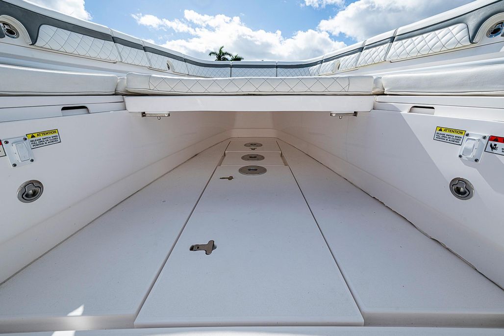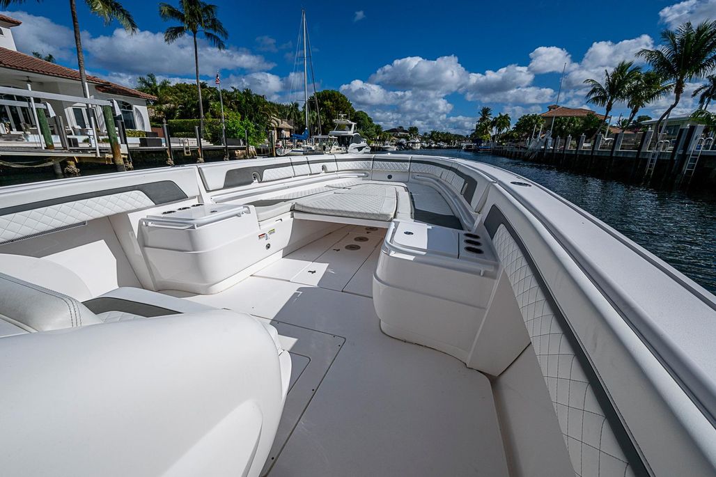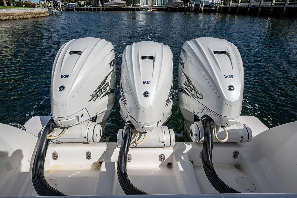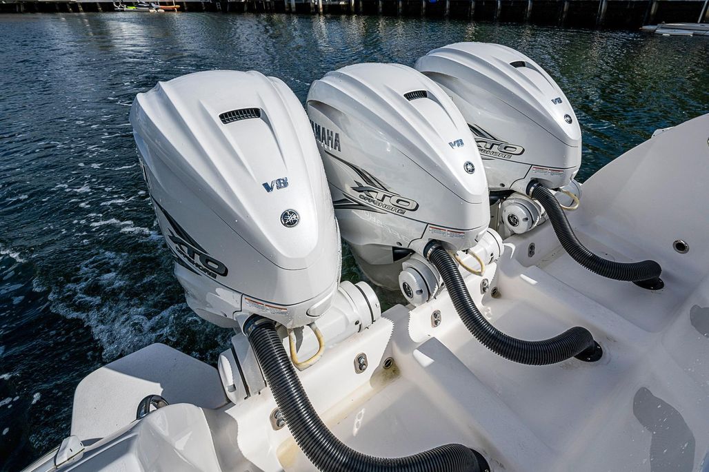 A pristine, high-performance offshore center console with exceptional design and capability. Powered by Triple Yamaha 425 XTO outboards, this 40’ Intrepid delivers incredible acceleration, smooth offshore handling, and serious fishing or cruising versatility. The Front Entry layout provides excellent access to a full head compartment, spacious helm area, and open cockpit. Built with vacuum-infused foam-cored fiberglass and Intrepid’s signature deep-V stepped hull, it’s engineered for comfort, fuel efficiency, and performance. Extensive storage, fishing features, premium seating, and optional electronics make this boat as functional as it is luxurious.